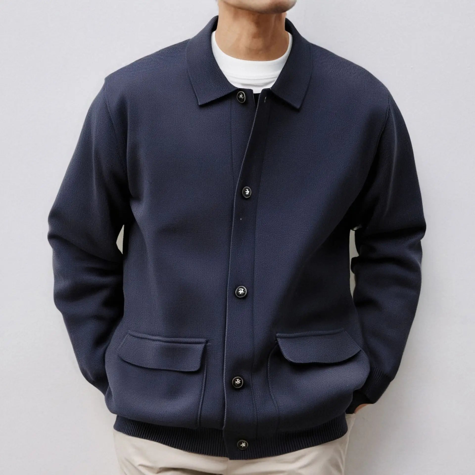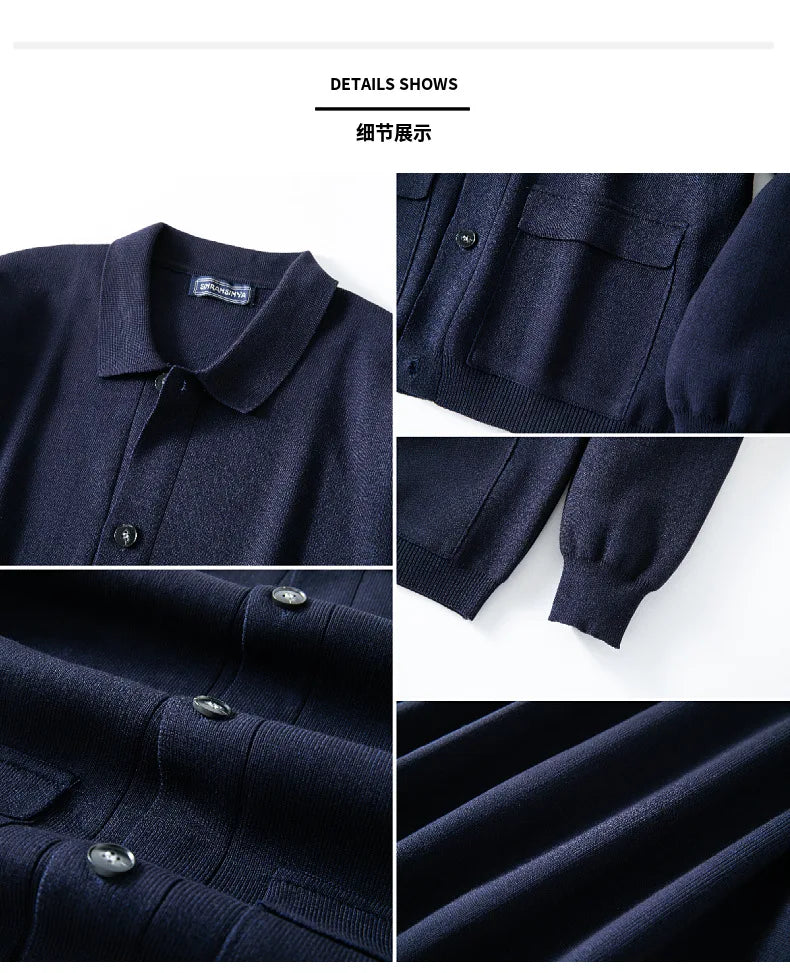 BONSIR - American European New Fashion Men's Navy Solid Color Casual Trendy Turn-down Collar Long Sleeve Pocket Jacket Coat Male