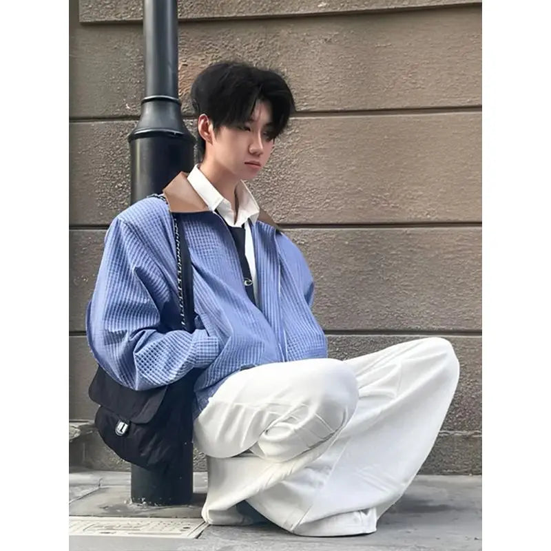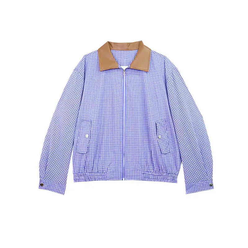 BONSIR - American retro leather collar plaid jacket men's spring and autumn loose casual high-end versatile shoulder pad jacket