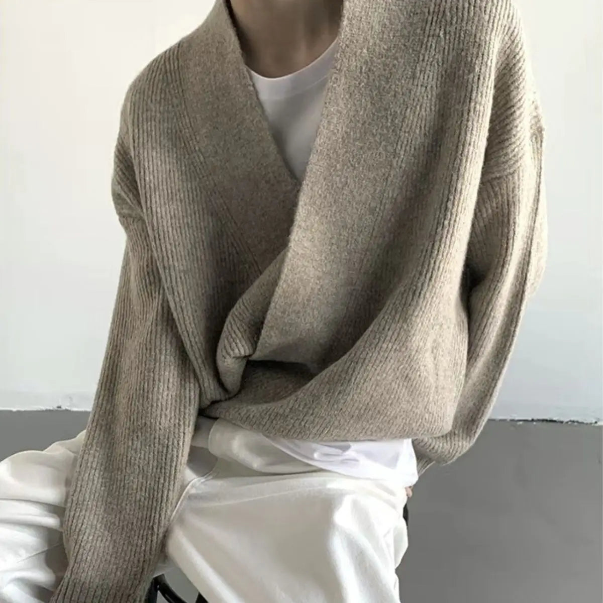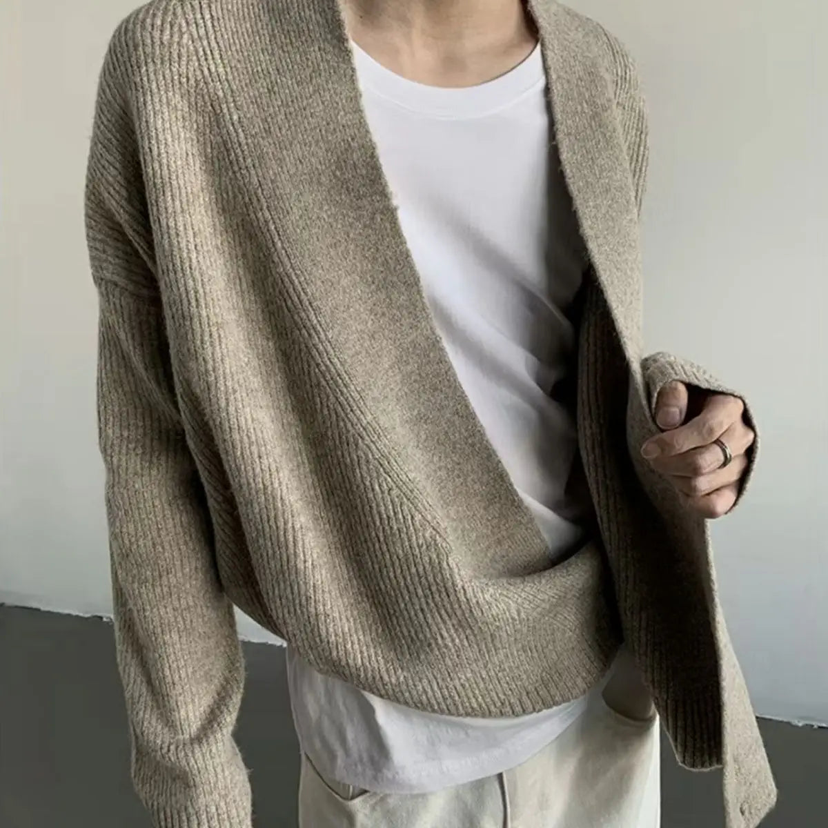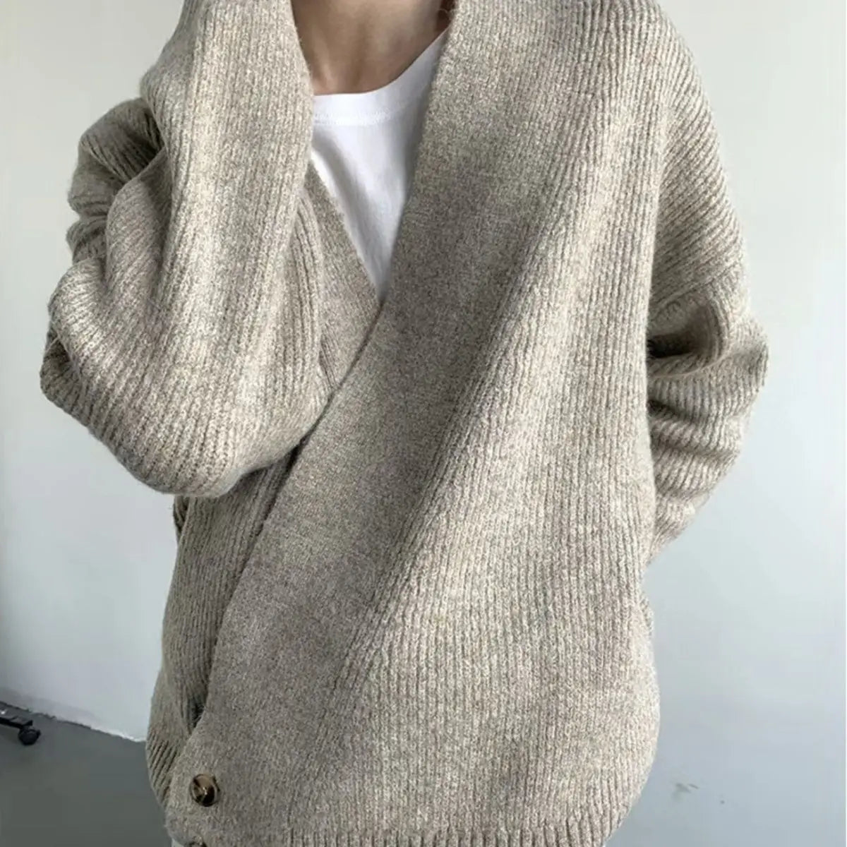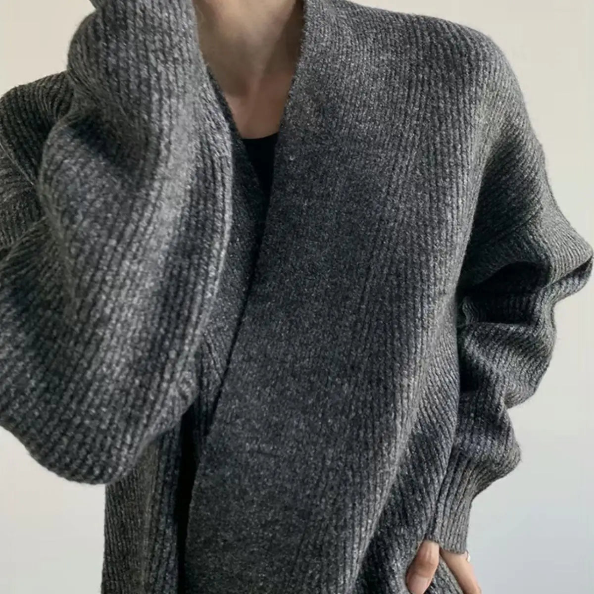 BONSIR - Autumn and winter simple design drop-down cardigan sweater loose lazy men's and women's casual knitted sweater jacket
