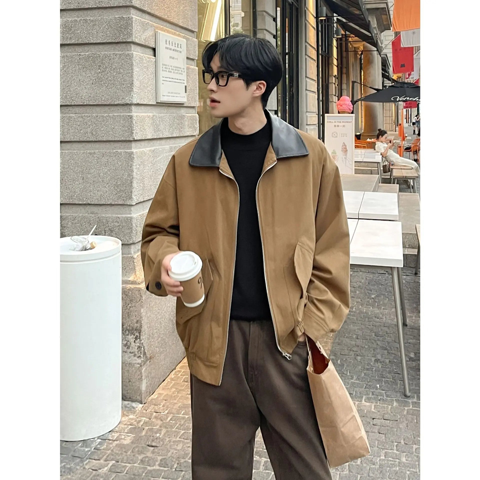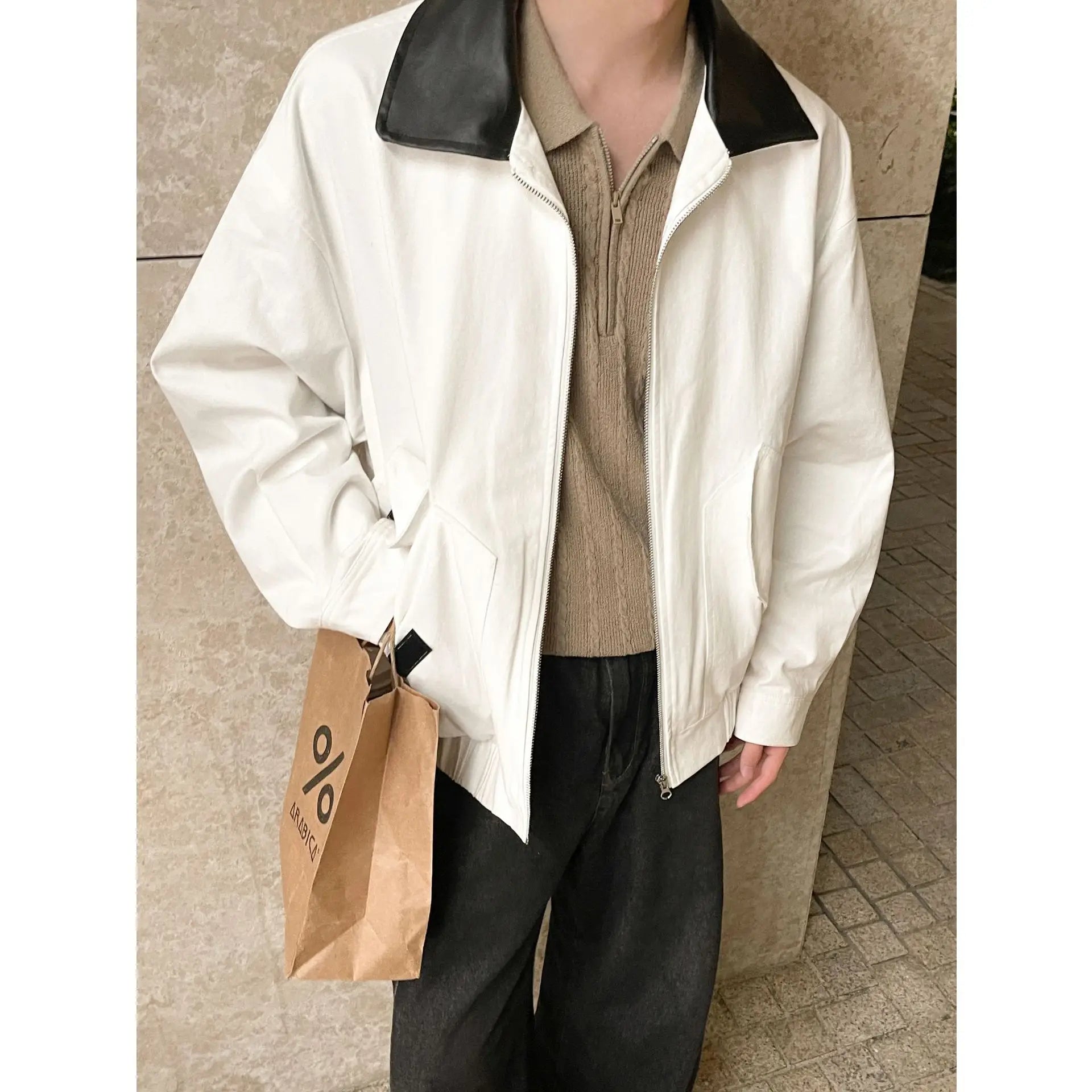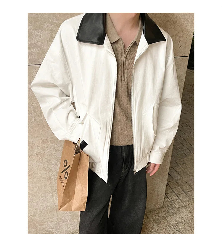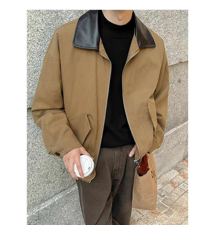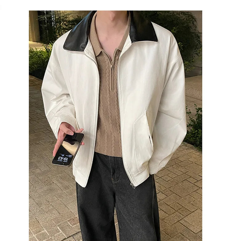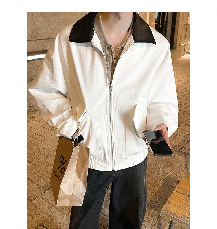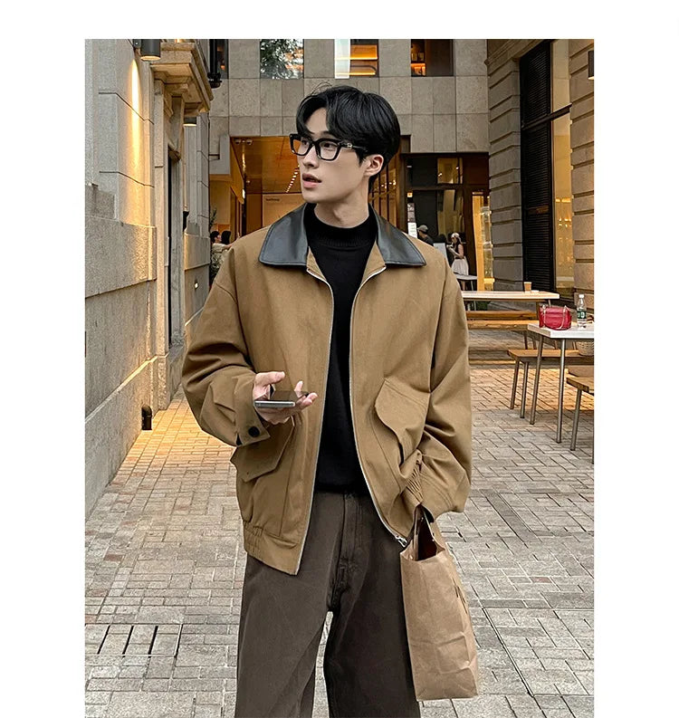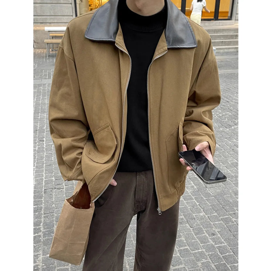 BONSIR - Autumn New Fashion Men's Loose Color-coded Casual Trendy Turn-down Collar Long Sleeve Zipper Jacket Male Coat Clothes Tops