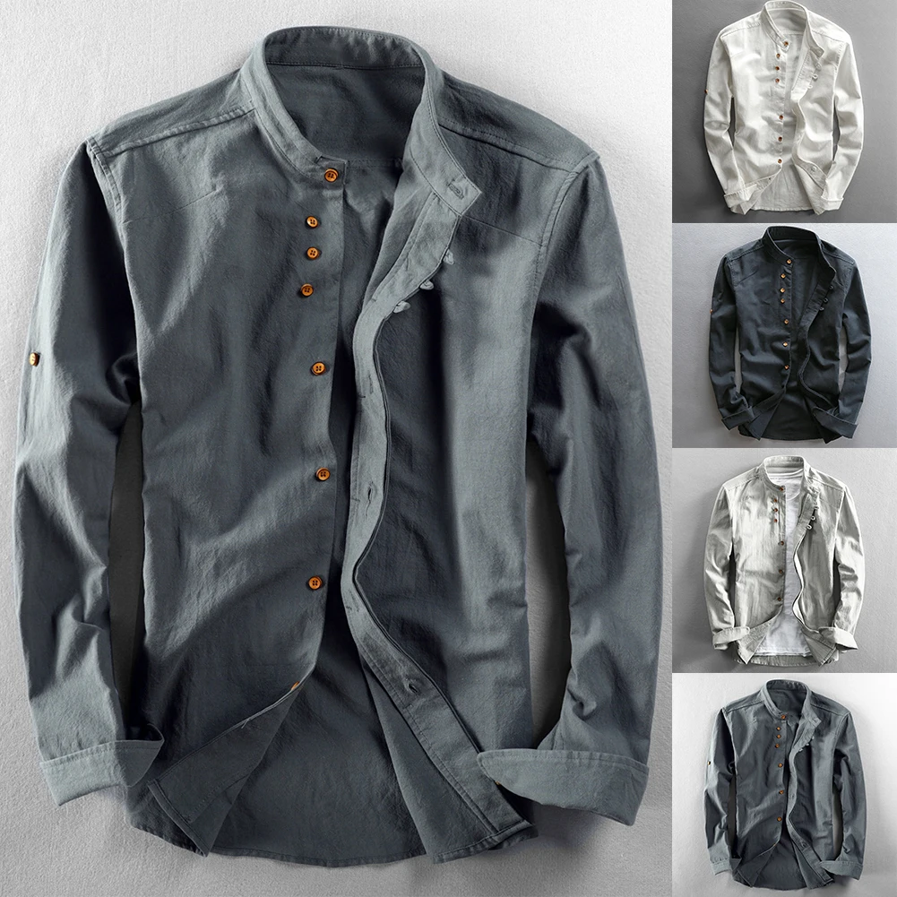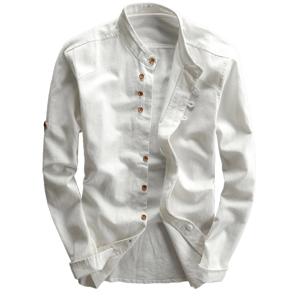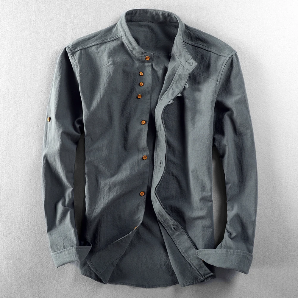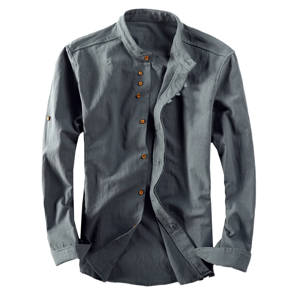 * Item Features:Mens ,Cotton Linen ,Shirt ,Long Sleeve ,Mandarin Collar ,Slim Fit, Business, Dress Shirts
