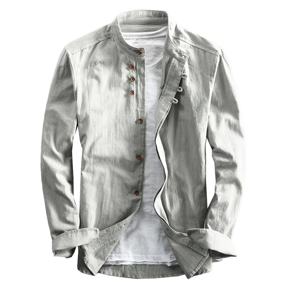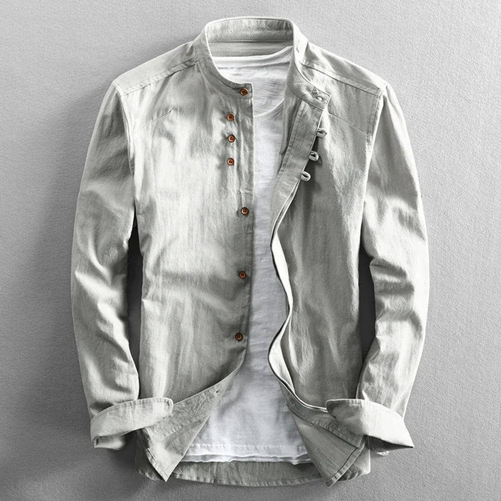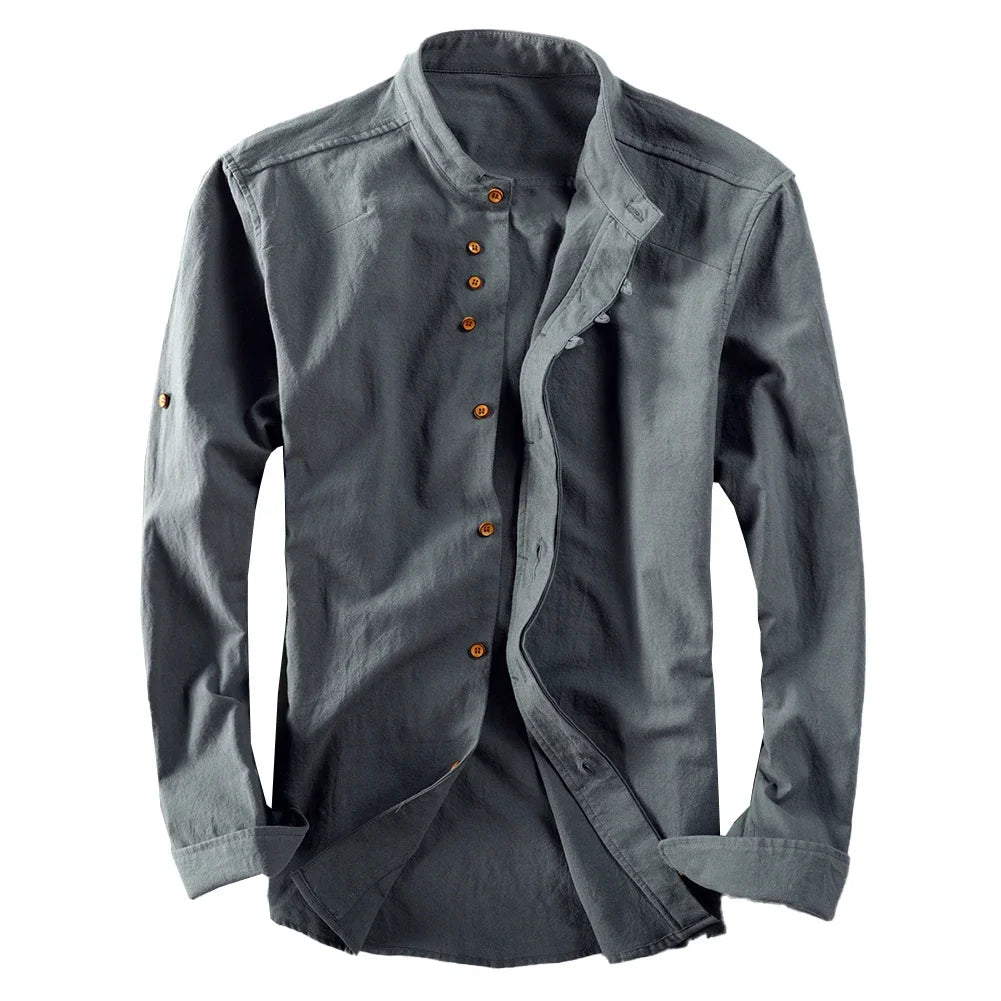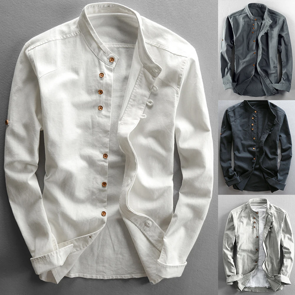 * Item Features:Mens ,Cotton Linen ,Shirt ,Long Sleeve ,Mandarin Collar ,Slim Fit, Business, Dress Shirts