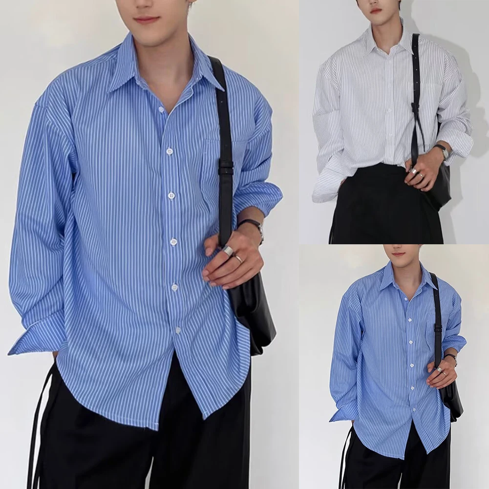 * Item Features:Mens, Casual ,Vintage ,Bowling ,Striped ,Long Sleeve ,Lapel ,Button Down, Loose, Korean Style ,Shirts, Blouse