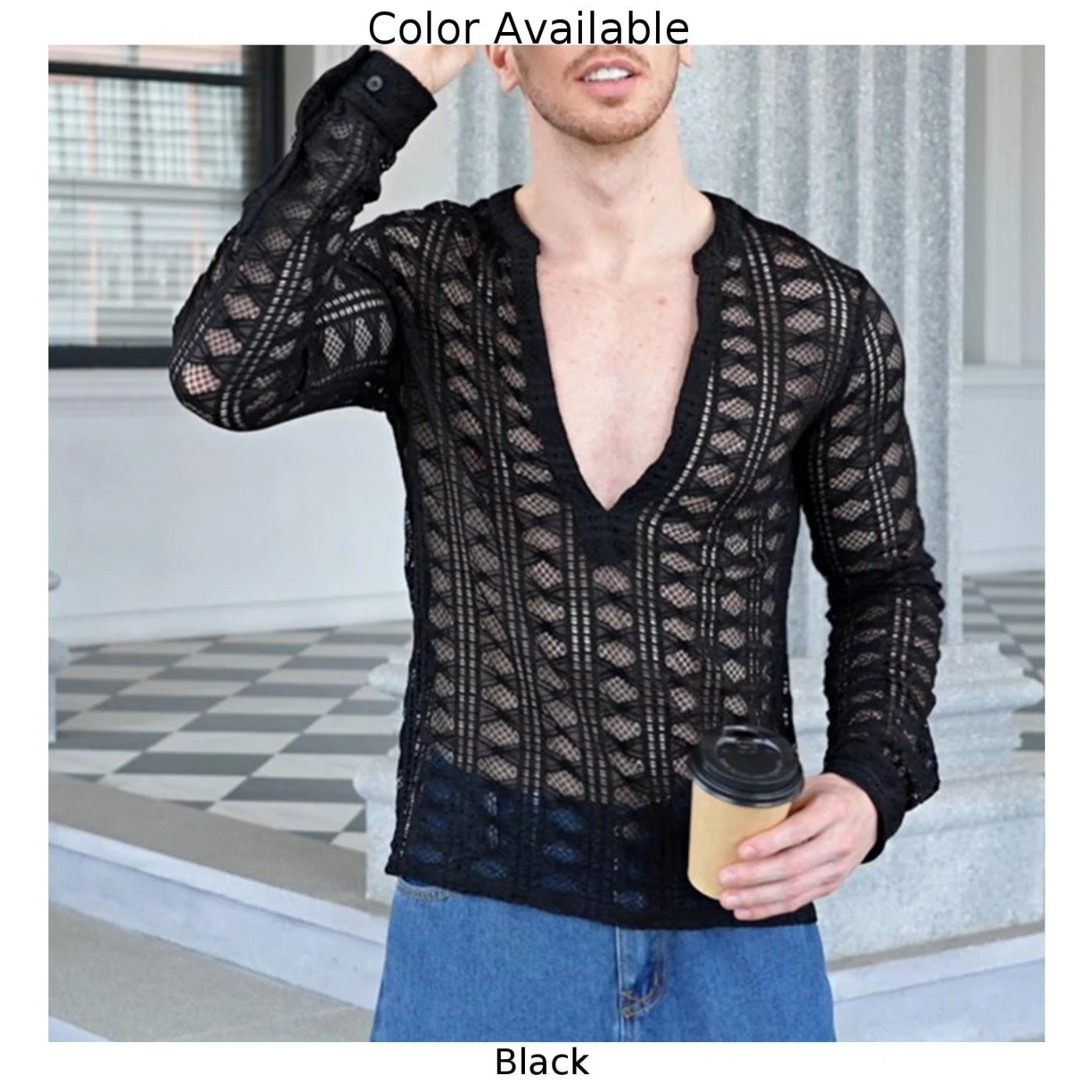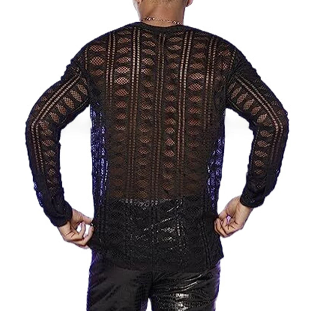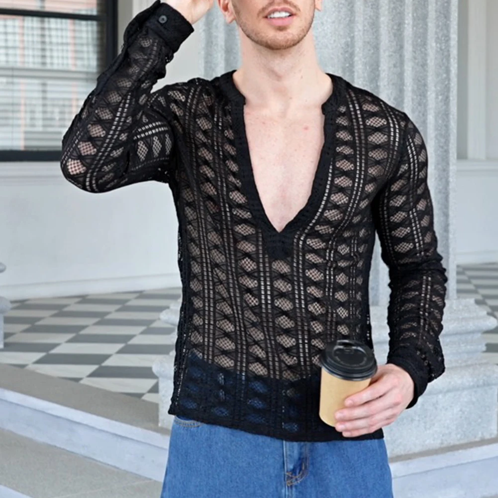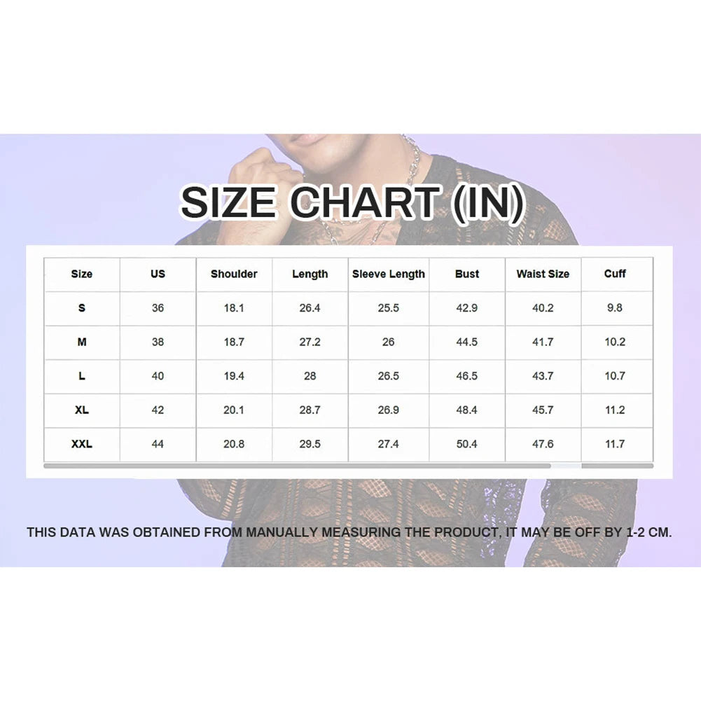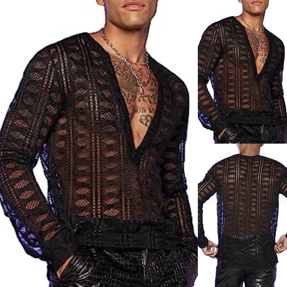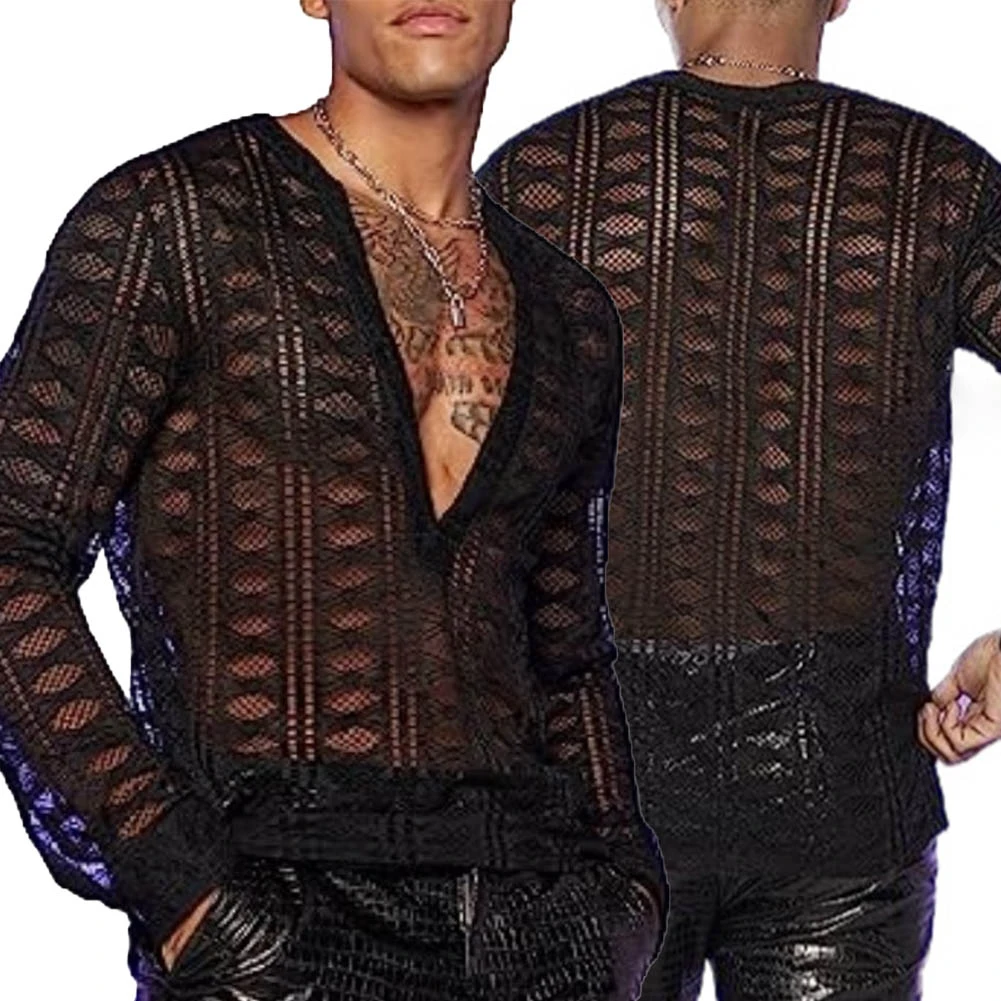 * Item Features:Men Shirt,Top,Full Sleeve,Long Sleeve,Slim,Casual,Comfortable,Soft,Outdoor,Fit,Casual,Fashion,Stage,Party,Performance,Mesh,See-through