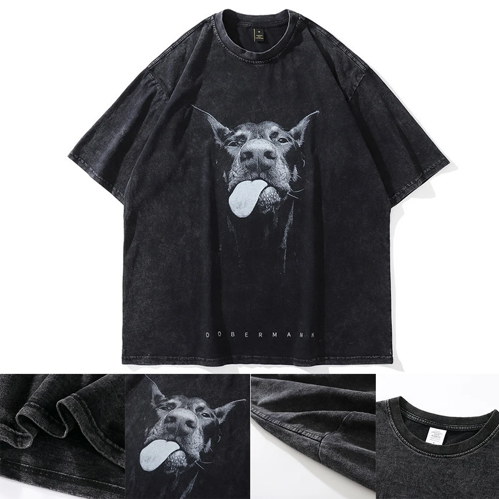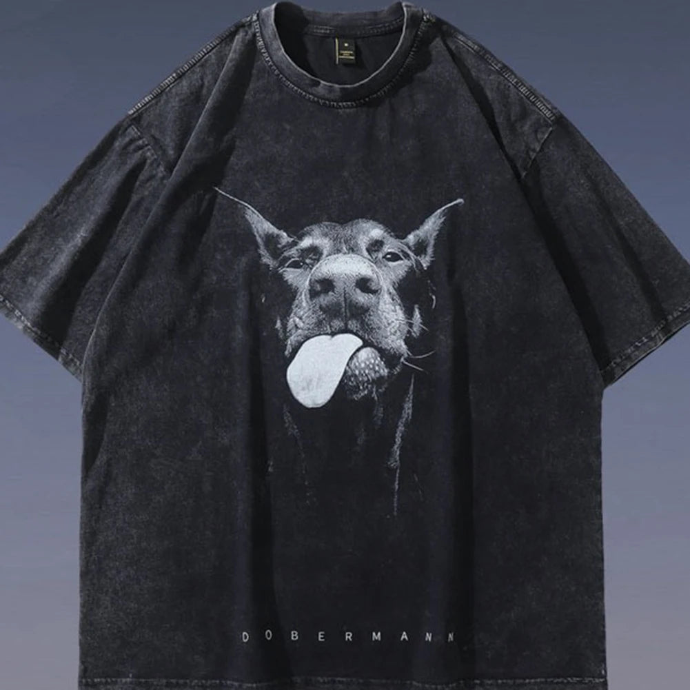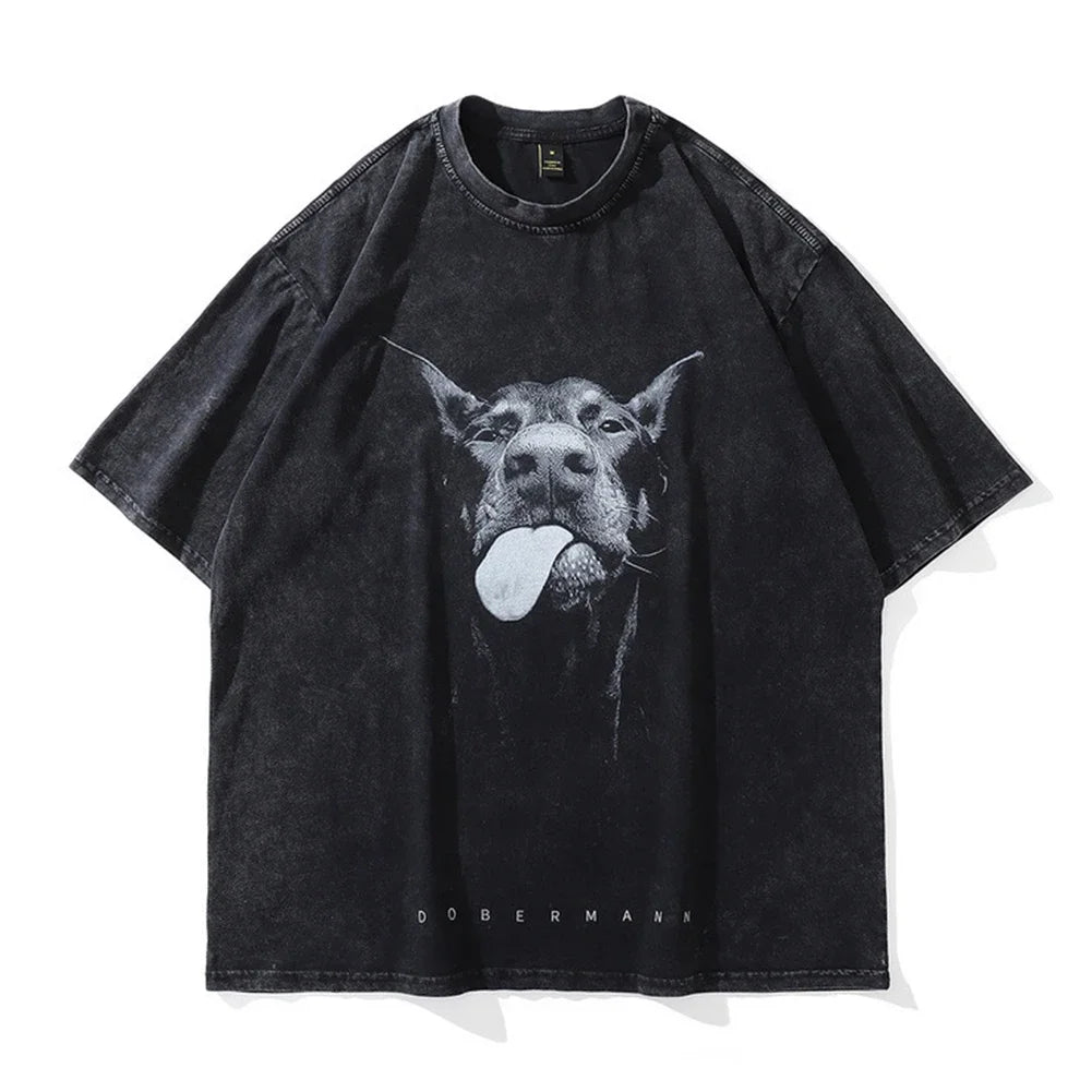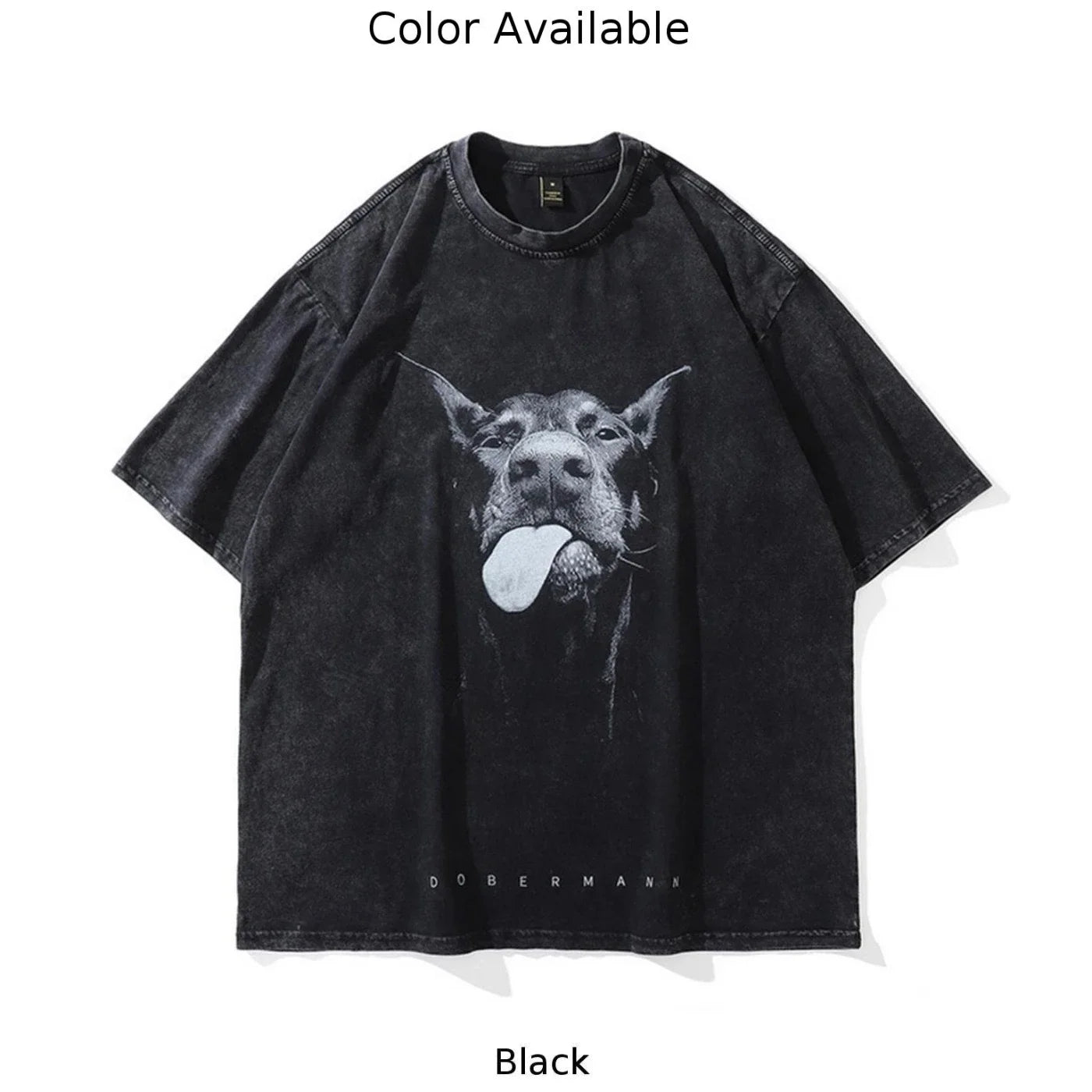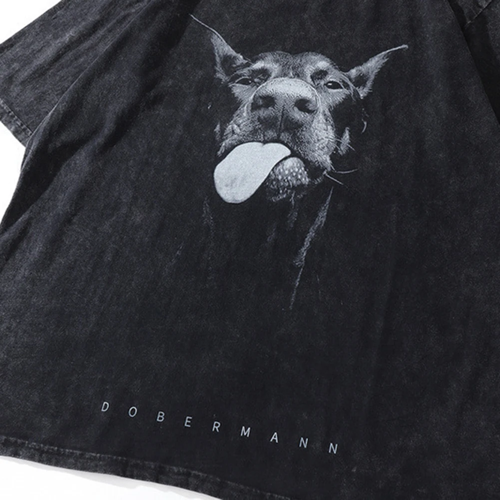 BONSIR - Daily Hip Hop Streetwear T-Shirt Fashion Funny Doberman Dog Graphic O Neck Short Sleeve Slight Stretch Comfortable