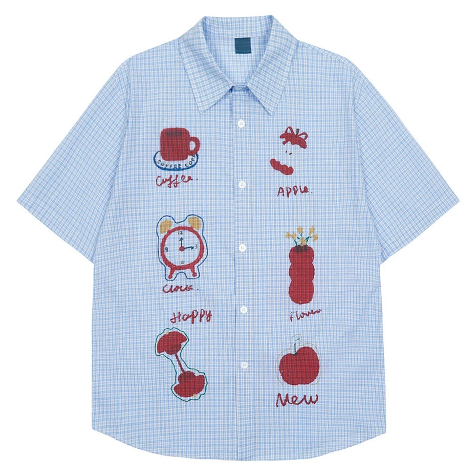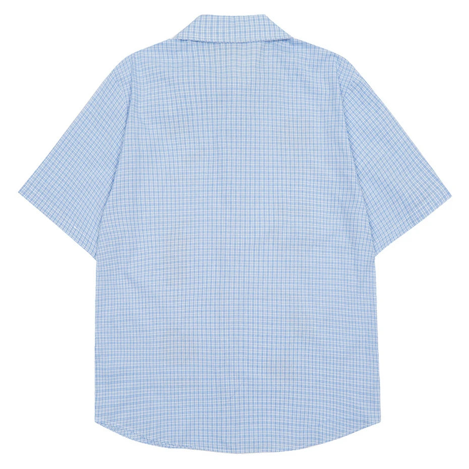 BONSIR - Fun Print Plaid Shirts Mens Streetwear Harajuku Cotton Casual Blouse Men Summer Preppy Style Oversized Short Sleeve Shirts Male