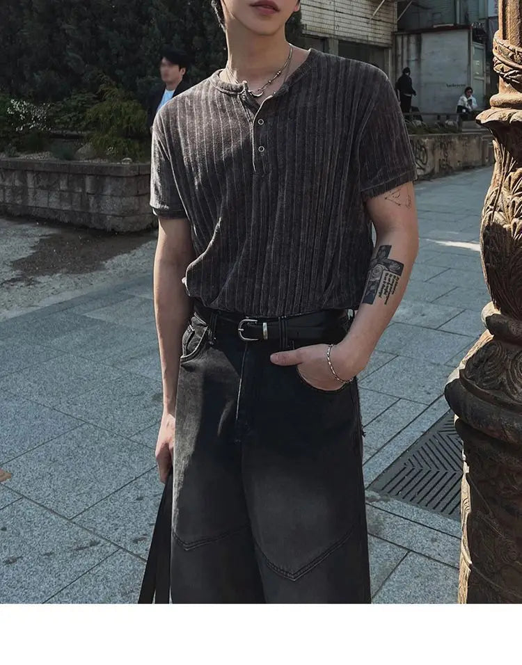 BONSIR - Henry collar short-sleeved T-shirt men's summer thin Tailored Cut versatile t-shirt Korean commuter style design top