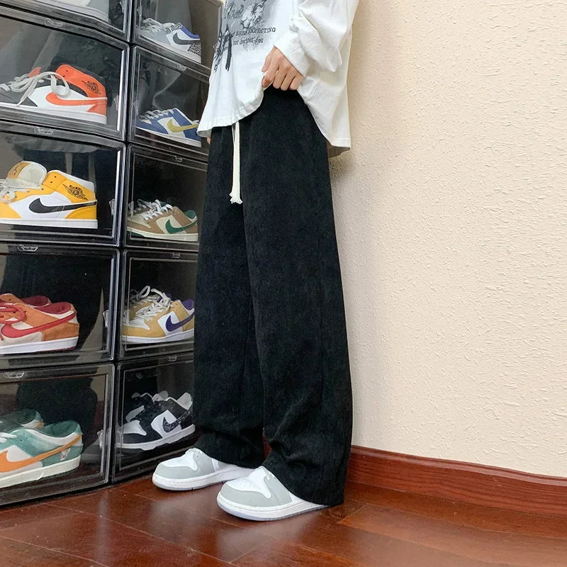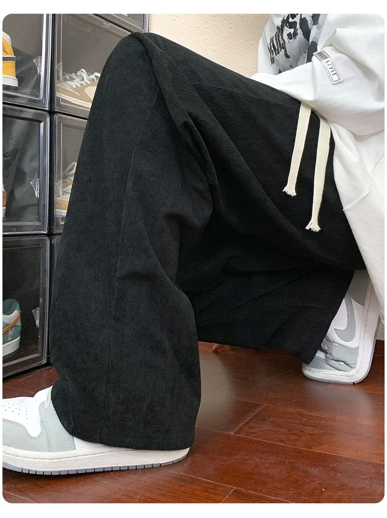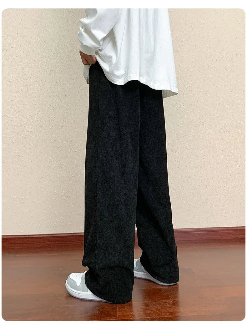 BONSIR - High Steet Solid Corduroy Pants Men Casual Baggy Pleated Pants Loose Joggers Autumn Wide Leg Trousers American Sensual Pants Men