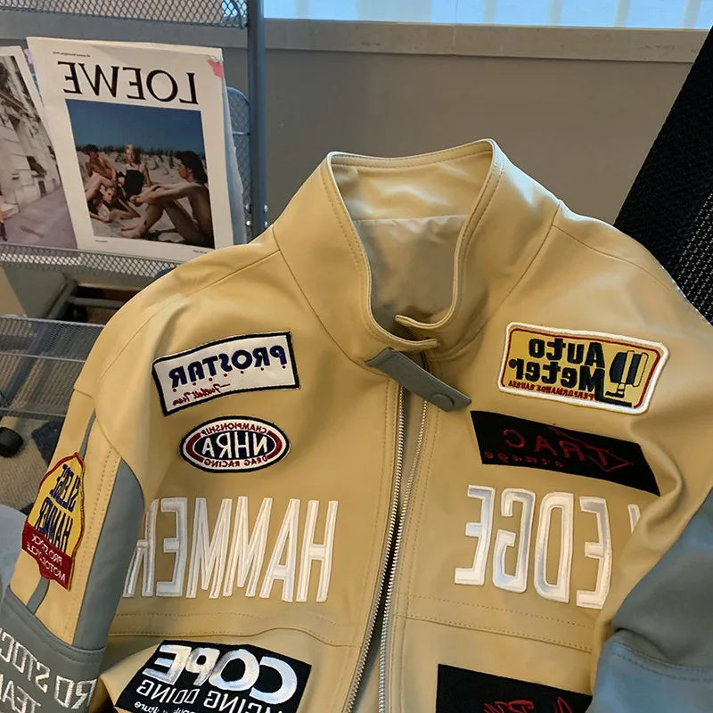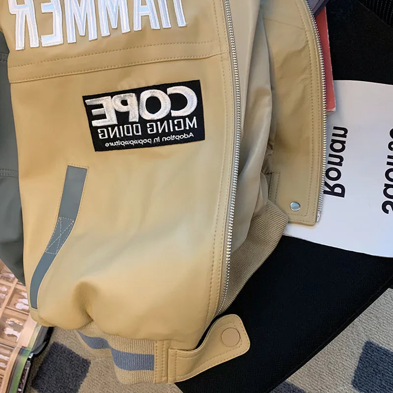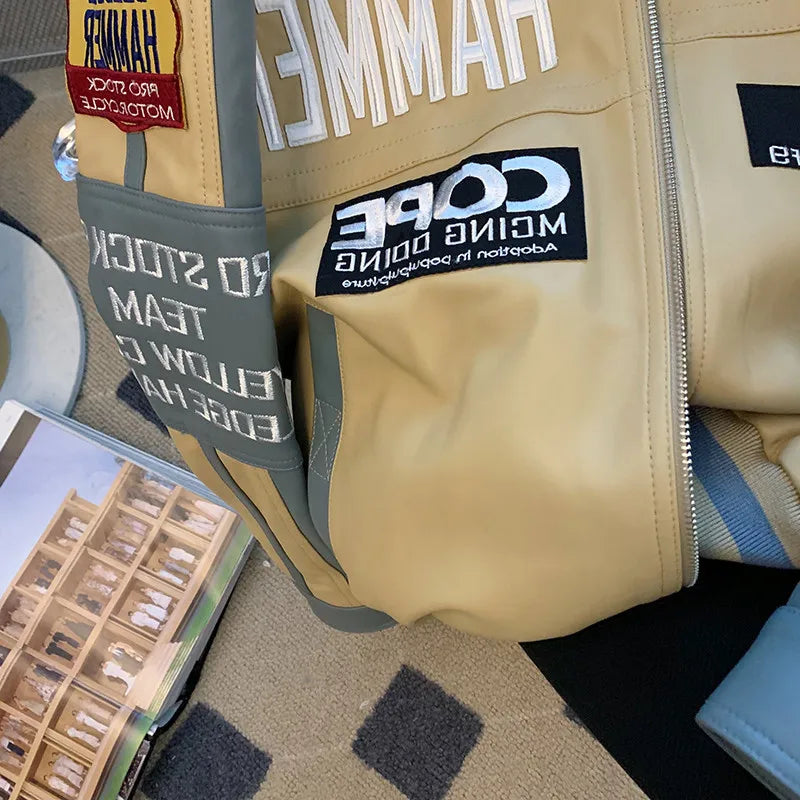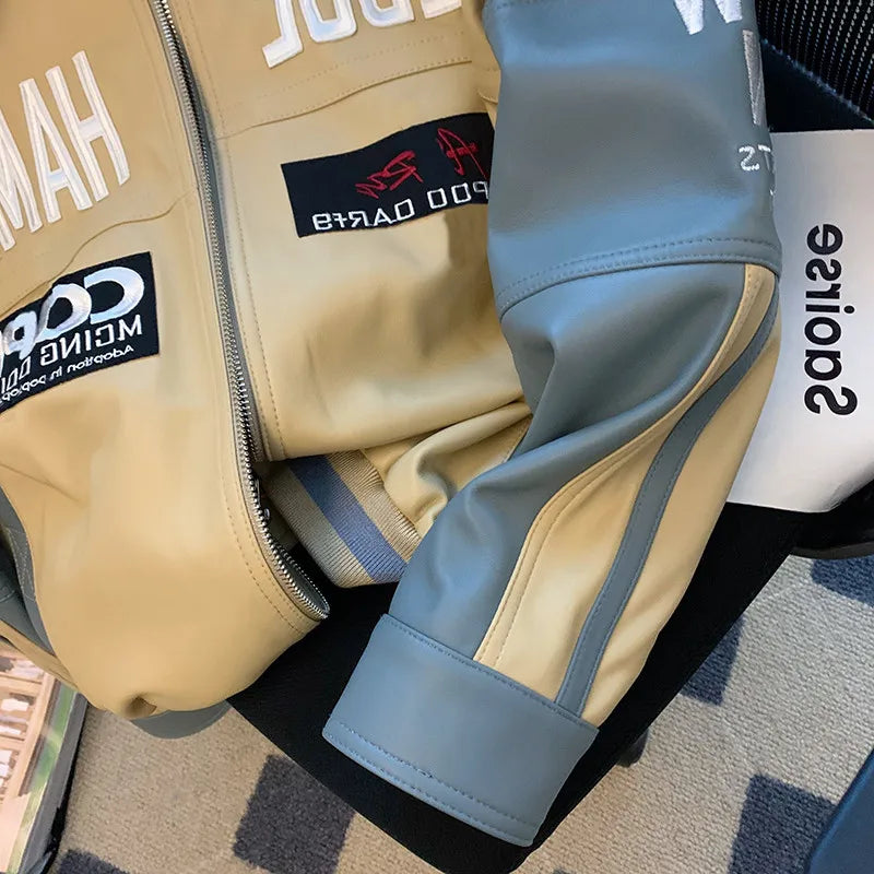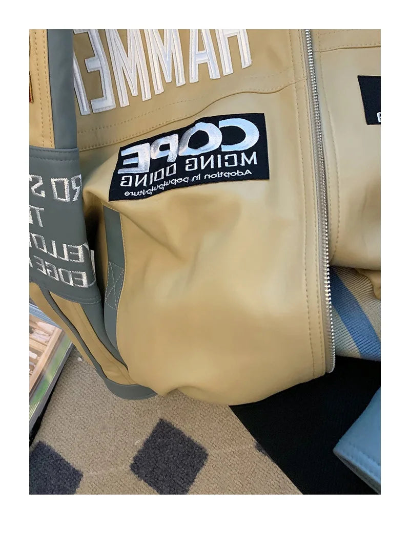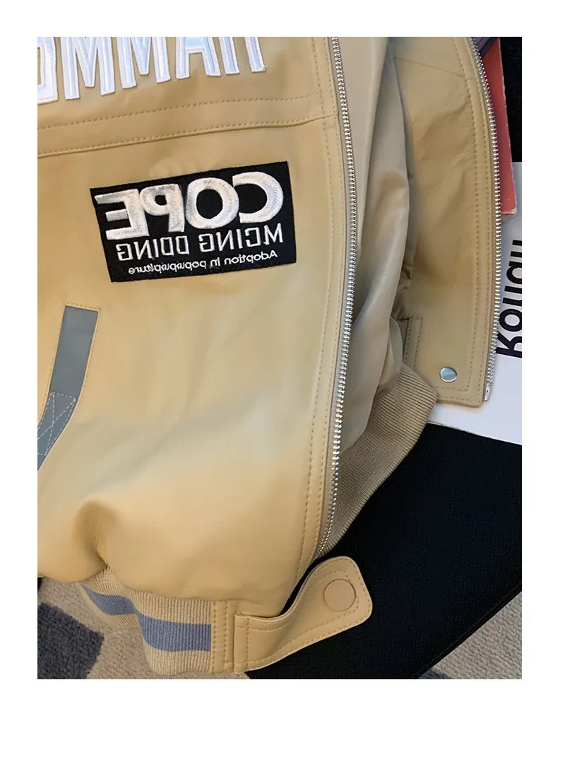 BONSIR - Hip Hop PU Leather Motorcycle Jaet Loose Fit Baseball Sle for Men And Women Trendy Streetwear Autumn Winter Thiened Youth