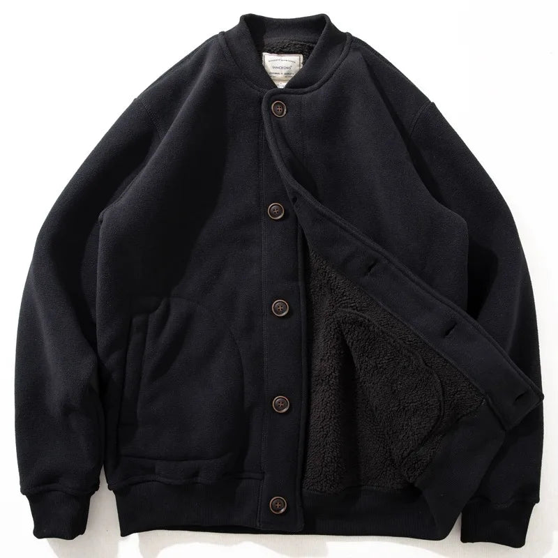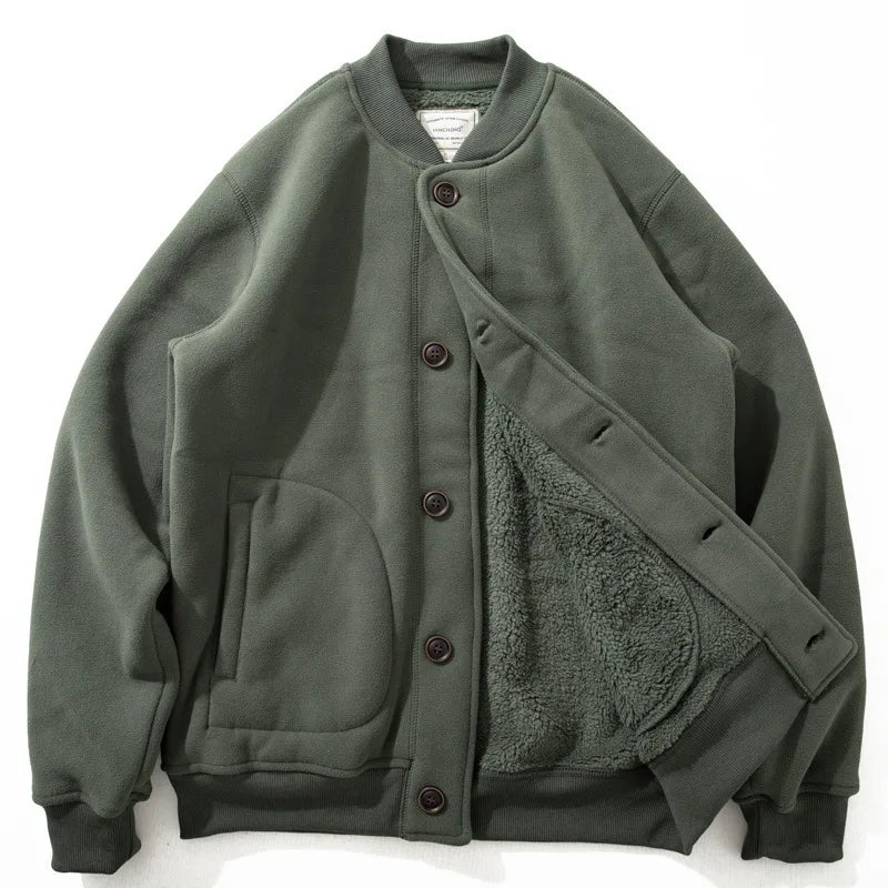 BONSIR - Japanese retro simple casual velvet cotton jacket for men 2025 autumn and winter American warm lamb velvet cotton jacket
