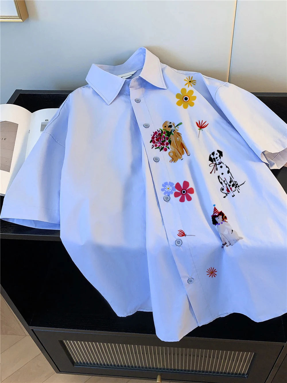 BONSIR - Korean Sle Casual Cartoon Print ort Sve irt Men Women Summer Faionable Versatile Loose Fit Button up Cardigan