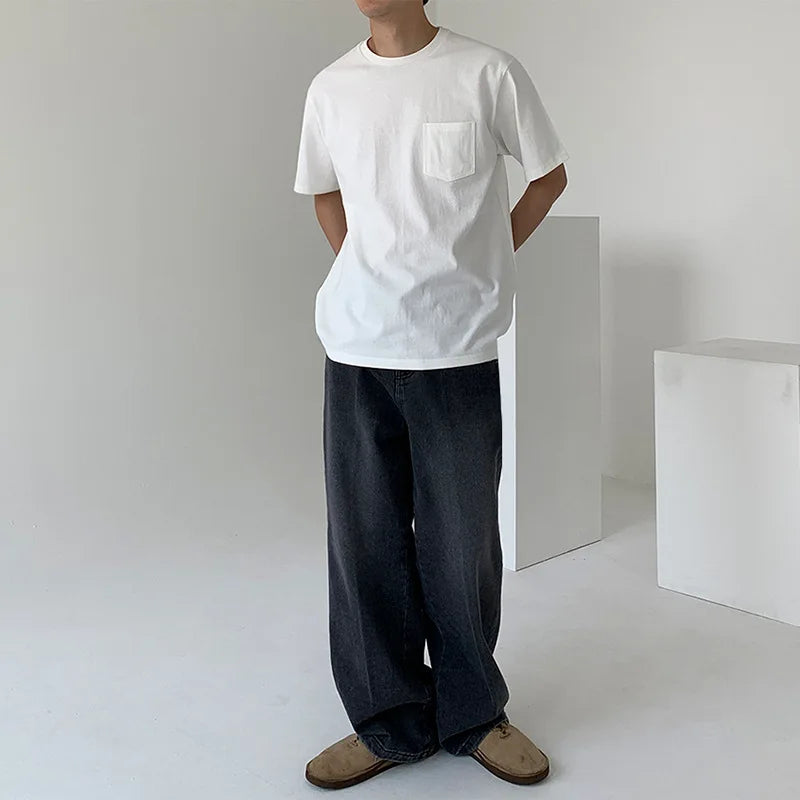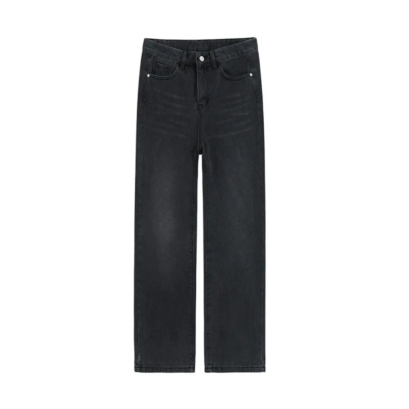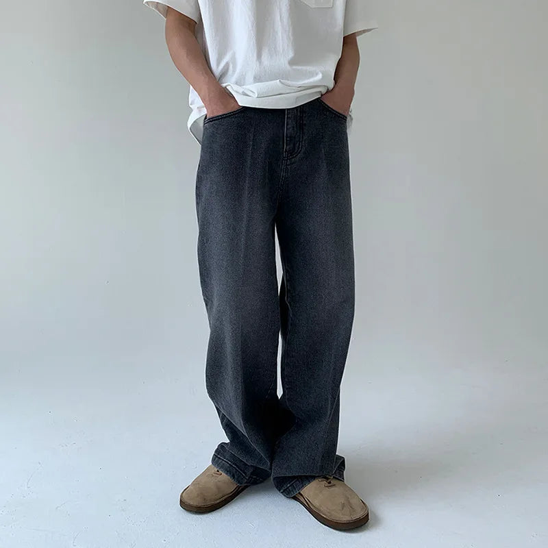 BONSIR - Male Jeans Pants Loose Casual Trendy Straight Wide Leg Denim Trousers Men's Dark Grey Vintage Jeans American Streetwear Clothes