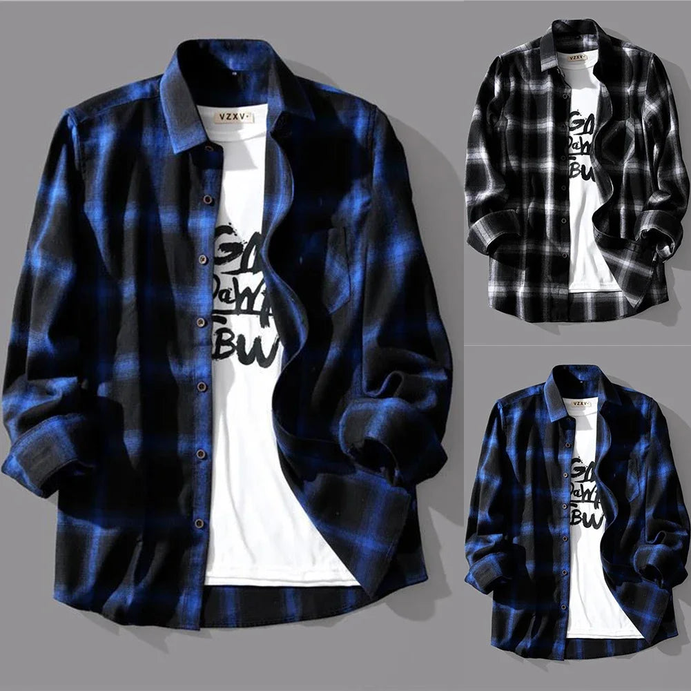 * Item Features:Men,Shirt,Long Sleeve,Blouse,Plaid,Button,Cardigan,Top,Lapel,Cardigan