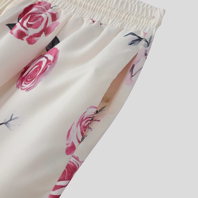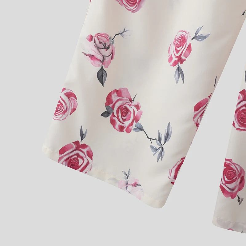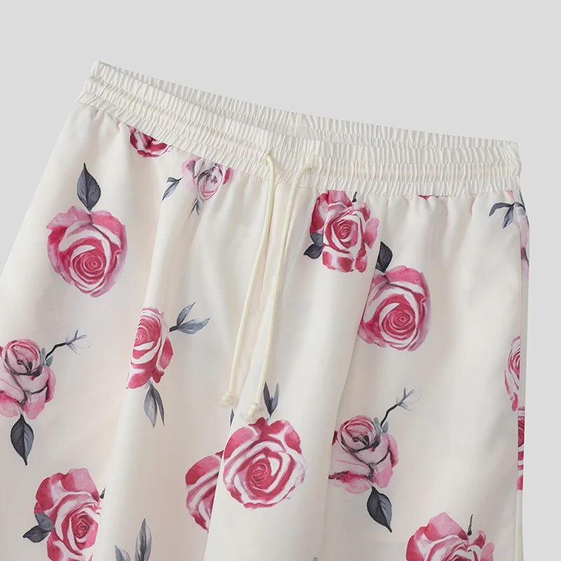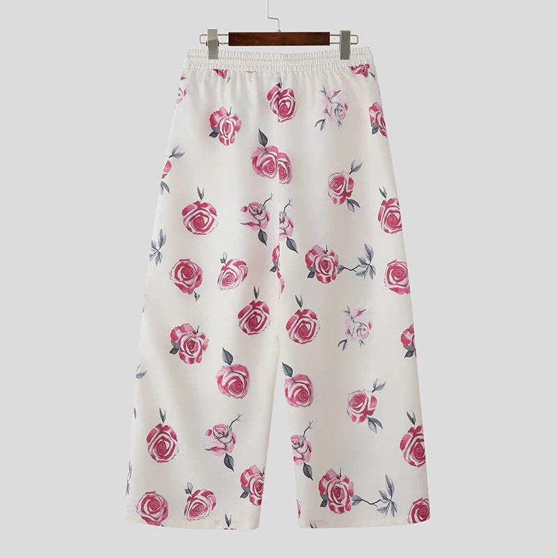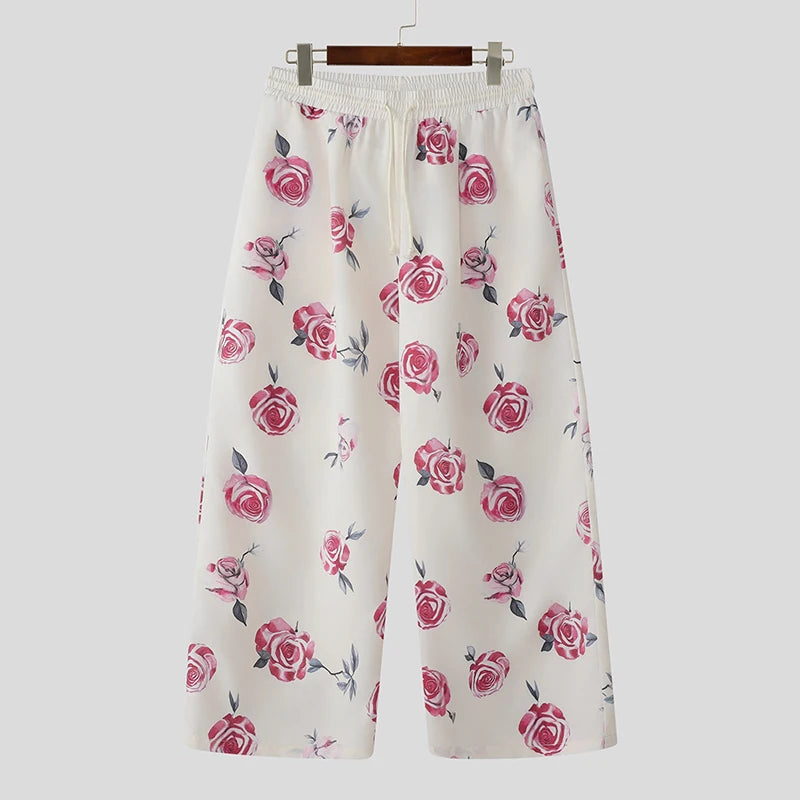 BONSIR - Men Pants Flower Printing Drawstring Loose Straight Trousers Men Streetwear 2025 Fashion Casual Long Pants Joggers S-5XL