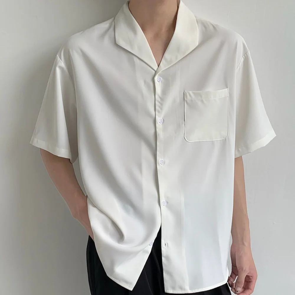 BONSIR - Men Shirt Cuban Collar Casual Shirt Spring/Summer Fashion Plain Simple Daily Versatile Short-Sleeve Tops Men'S Clothing 2025 New