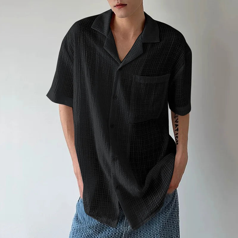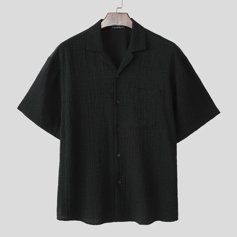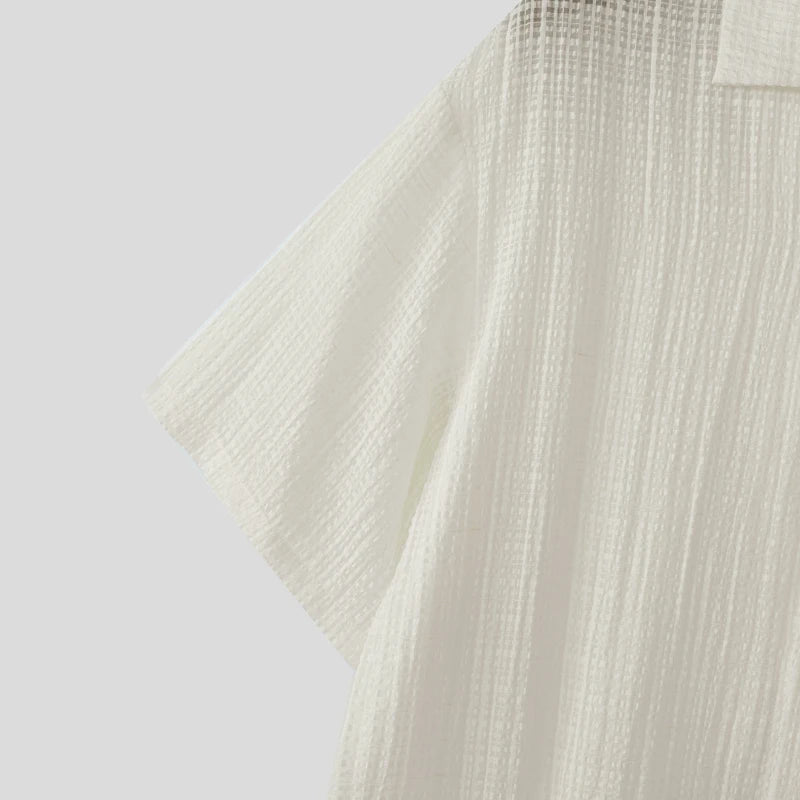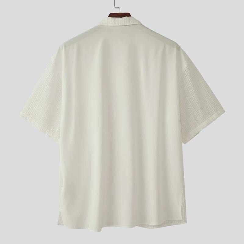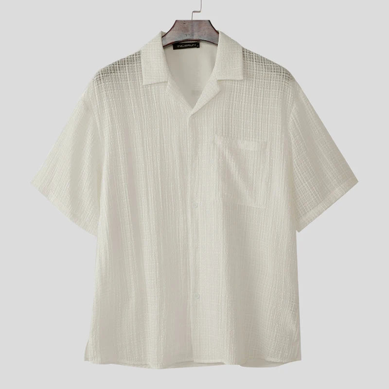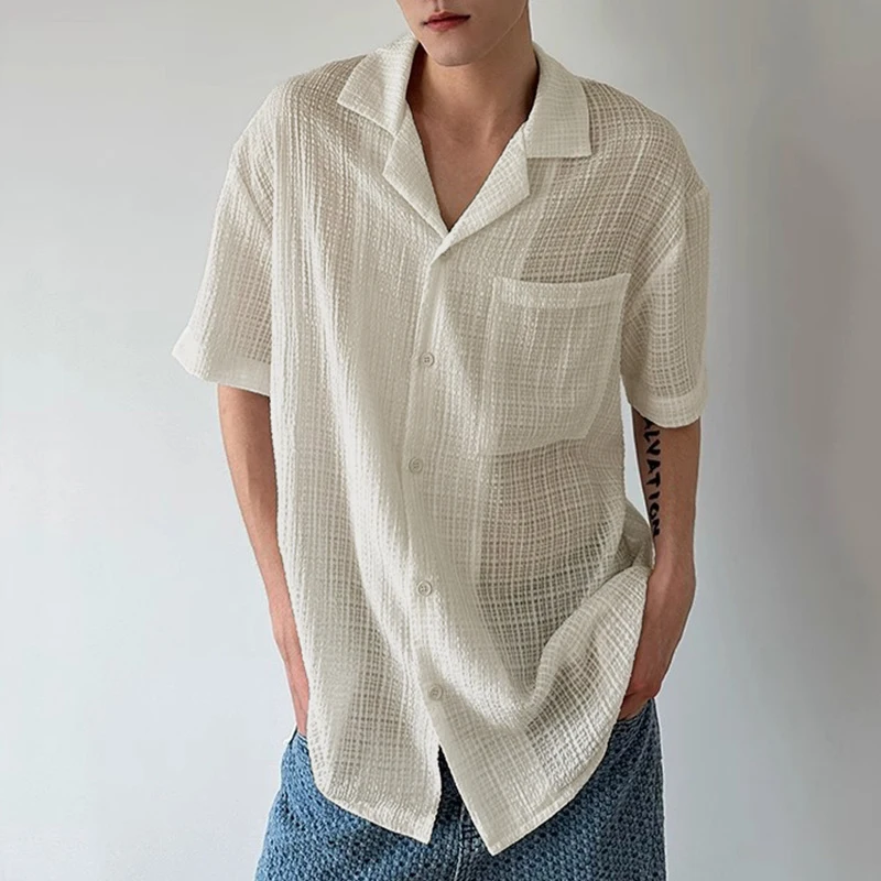 BONSIR - Men Shirt Lapel Short Sleeve Summer Loose Casual Tops Streetwear Shirts 2025 Patchwork See Through Stylish Men Clothing
