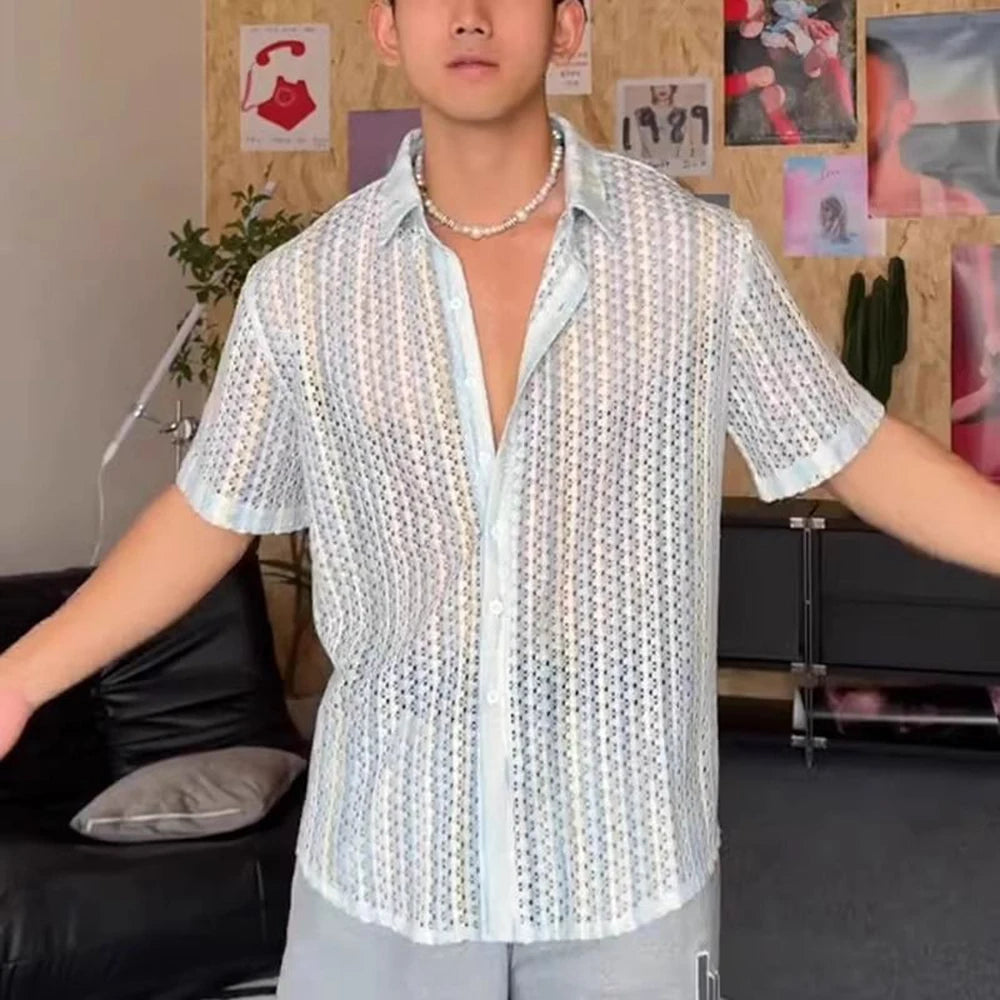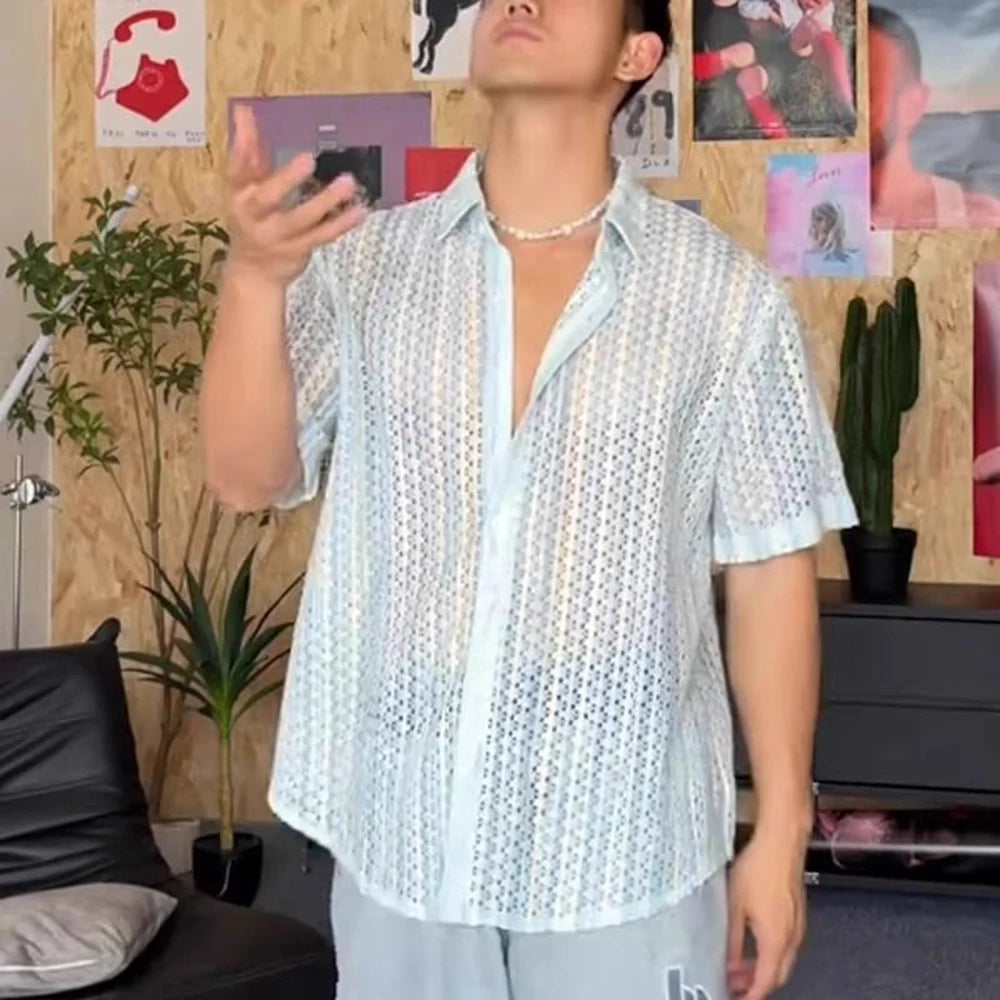 BONSIR - Men Shirts Thin Holiday Casual Shirts Summer Streetwear American Fashion Outdoor Trend Short-Sleeve Tops Men'S Clothing 2025 New