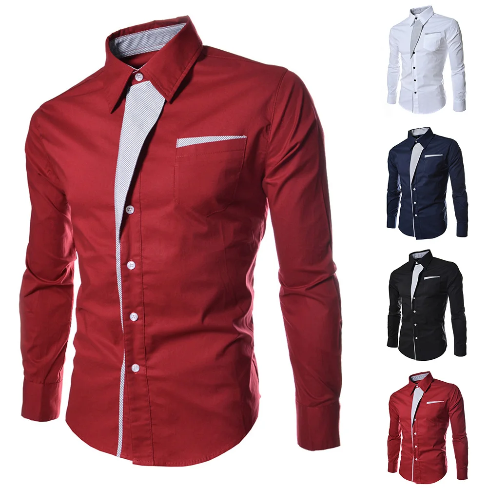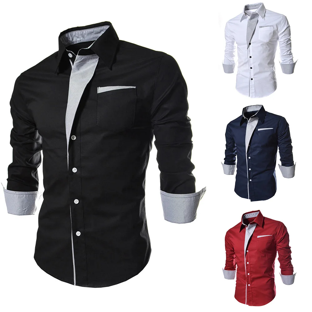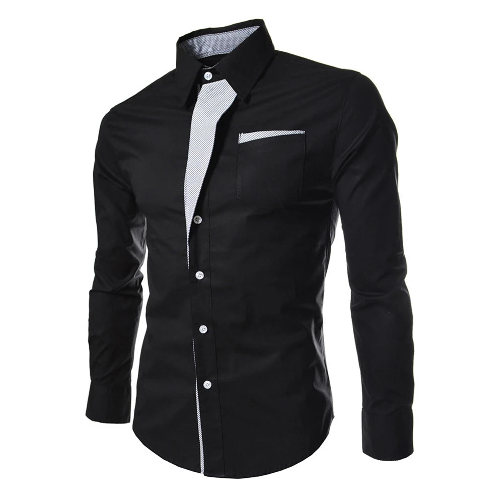 BONSIR - Mens Casual Slim Shirts Long Sleeve Button Down Business Formal Dress Shirt Tops Fashion Blouse Luxury Social Shirts For Men