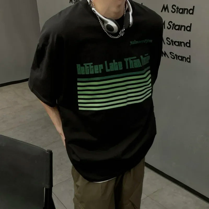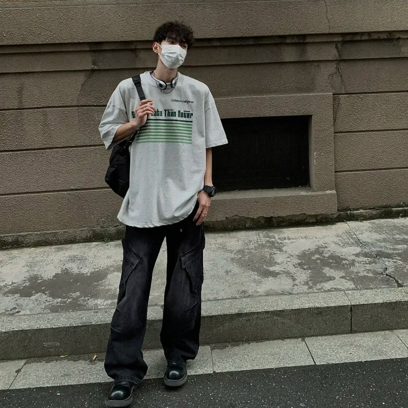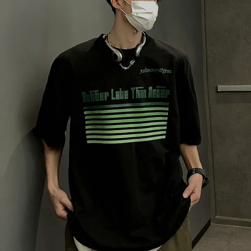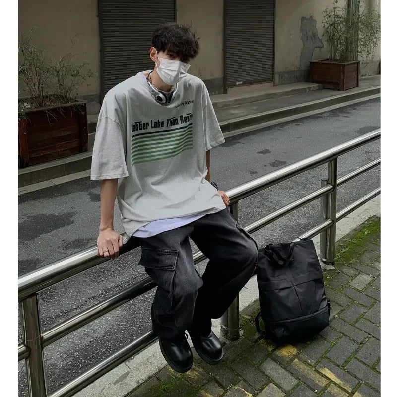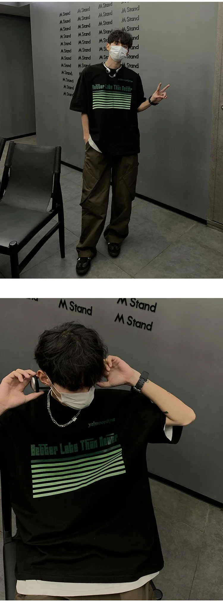 BONSIR - Mens Cotton Oversized T-shirt Summer Short Sleeve Loose Breathable T Shirts Men Hip Hop Print Y2k Tops Tee Harajuku Goth Clothes