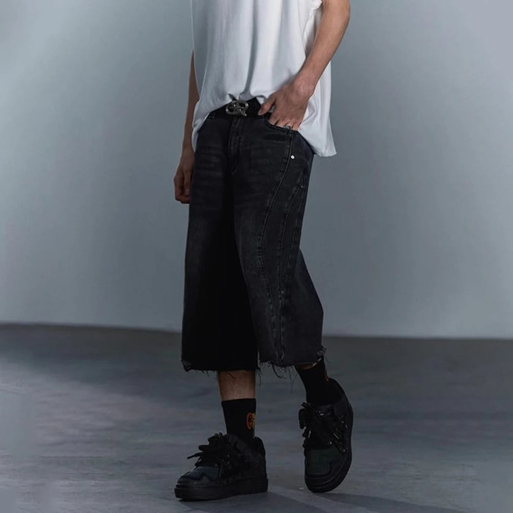 BONSIR - Mens Deconstructed Raw Edge Washed Jeans Streetwear Fashion Versatile Youth Campus Daily Casual Shorts Men'S Clothing 2025 New