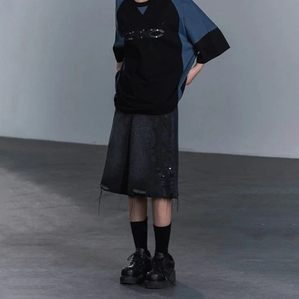BONSIR  -  Mens Deconstructed Raw Edge Washed Jeans Streetwear Fashion Versatile Youth Campus Daily Casual Shorts Men'S Clothing 2025 New