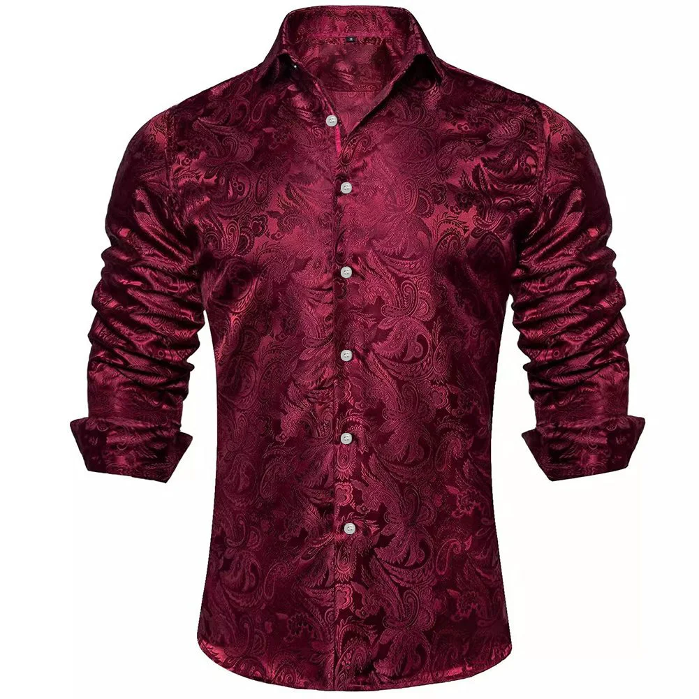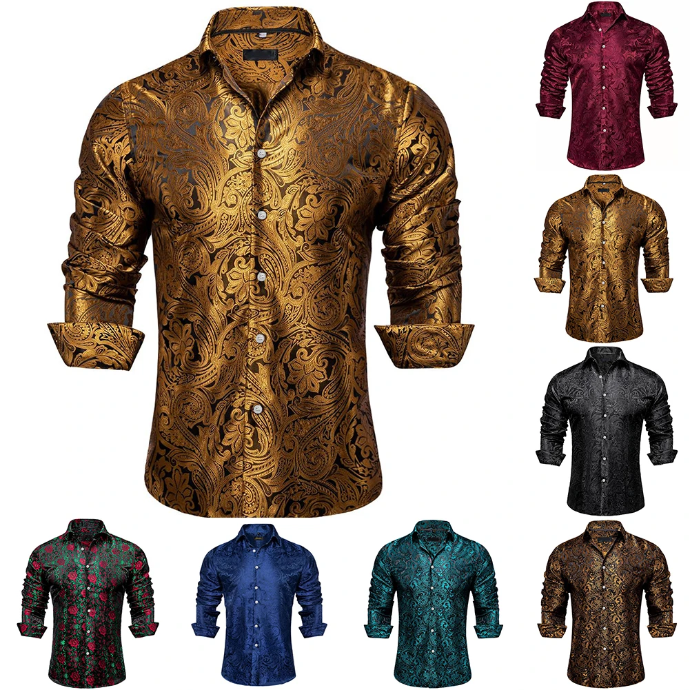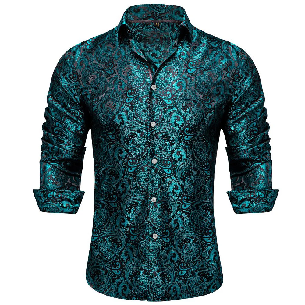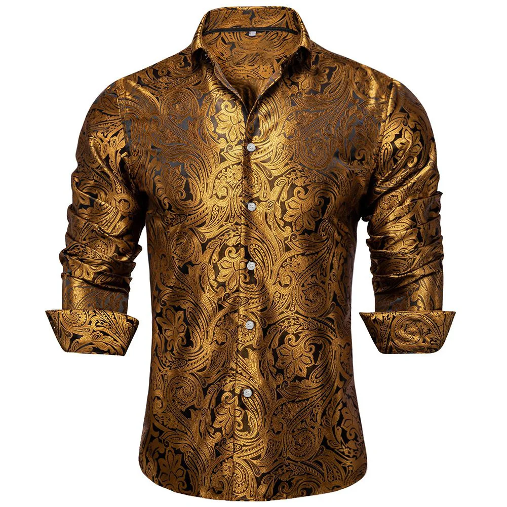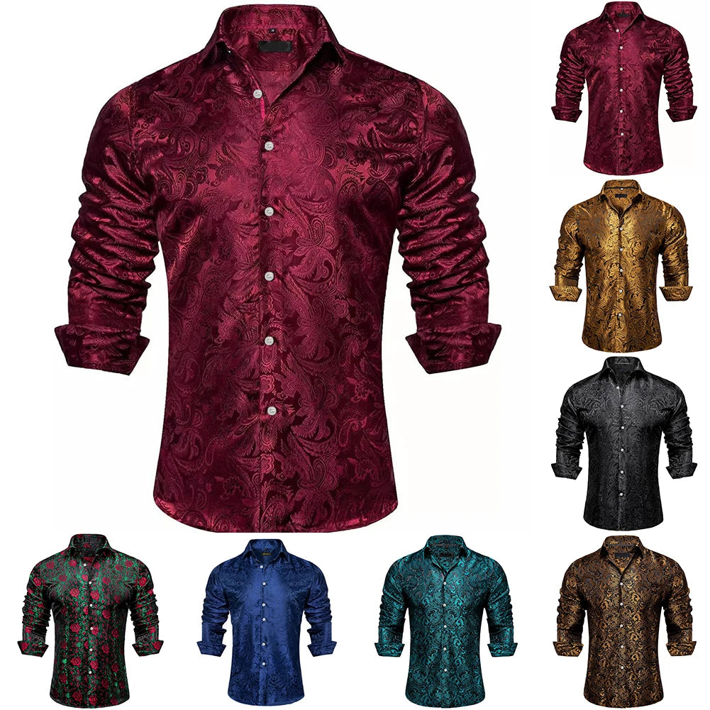 BONSIR - Mens Formal Blouse Paisley Long Sleeve Shirts Wedding Casual Style Lapel Neckline Polyester Fabric Regular Fit