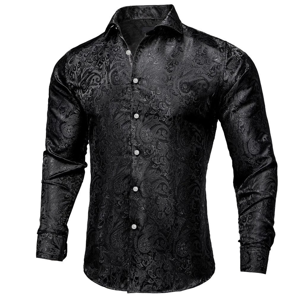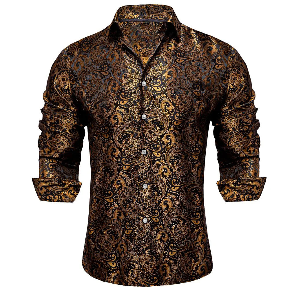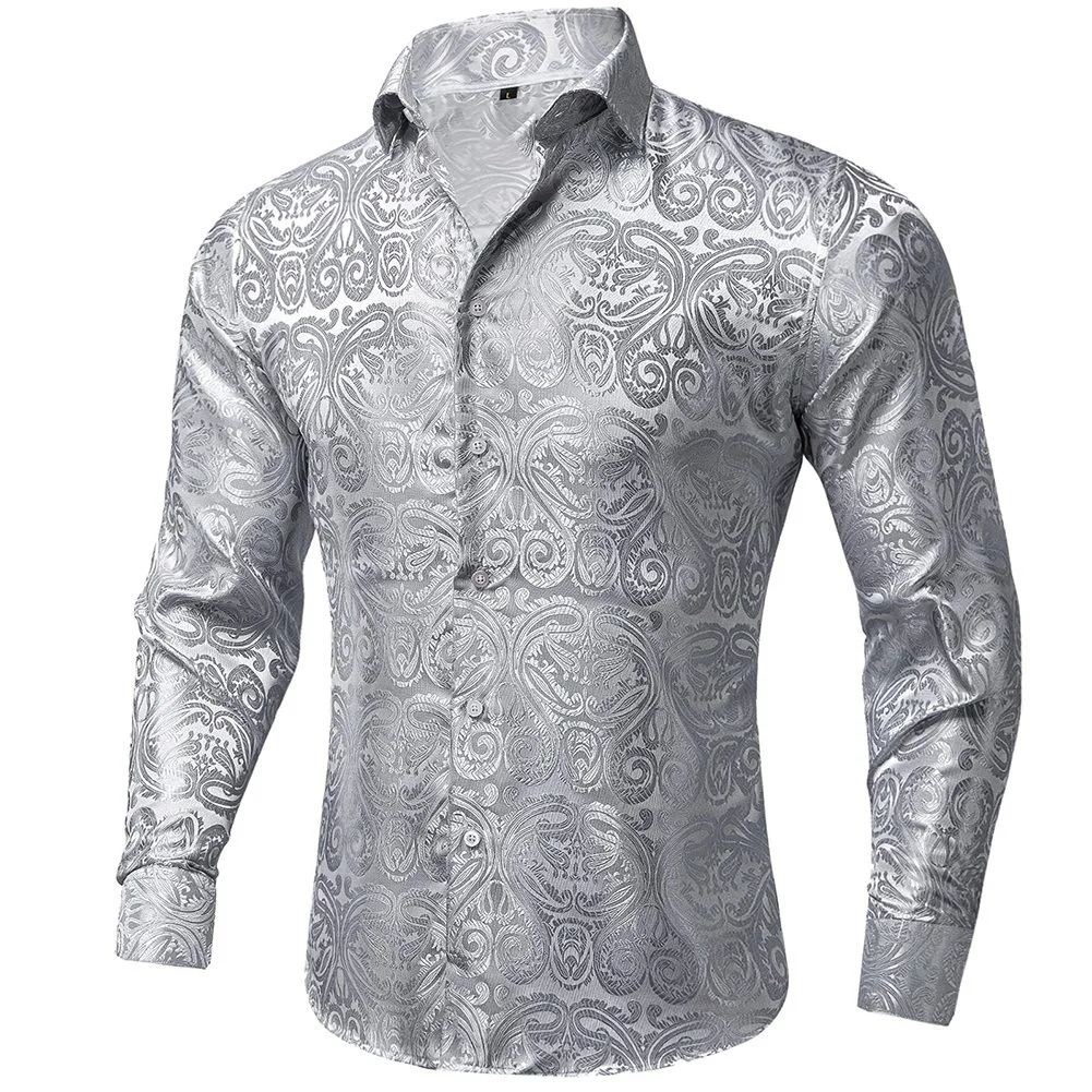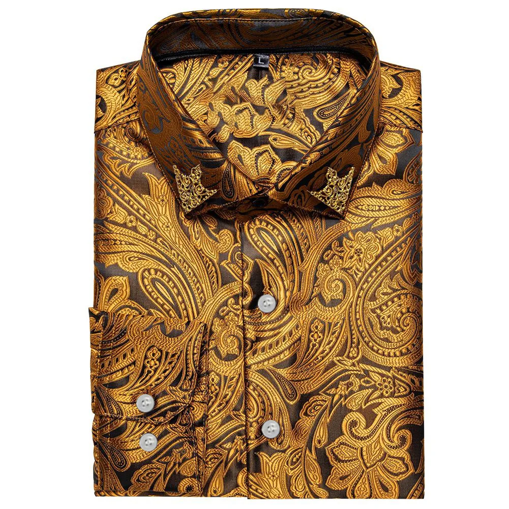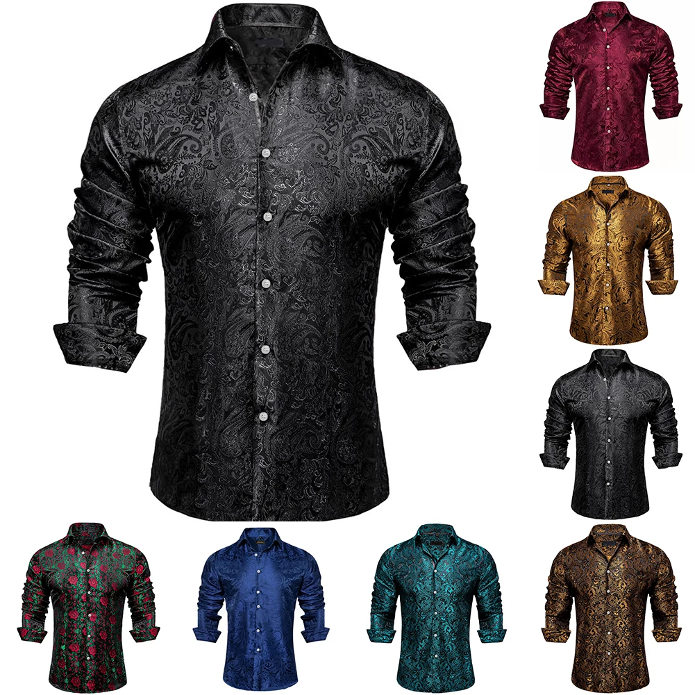 BONSIR - Mens Formal Blouse Paisley Long Sleeve Shirts Wedding Casual Style Lapel Neckline Polyester Fabric Regular Fit