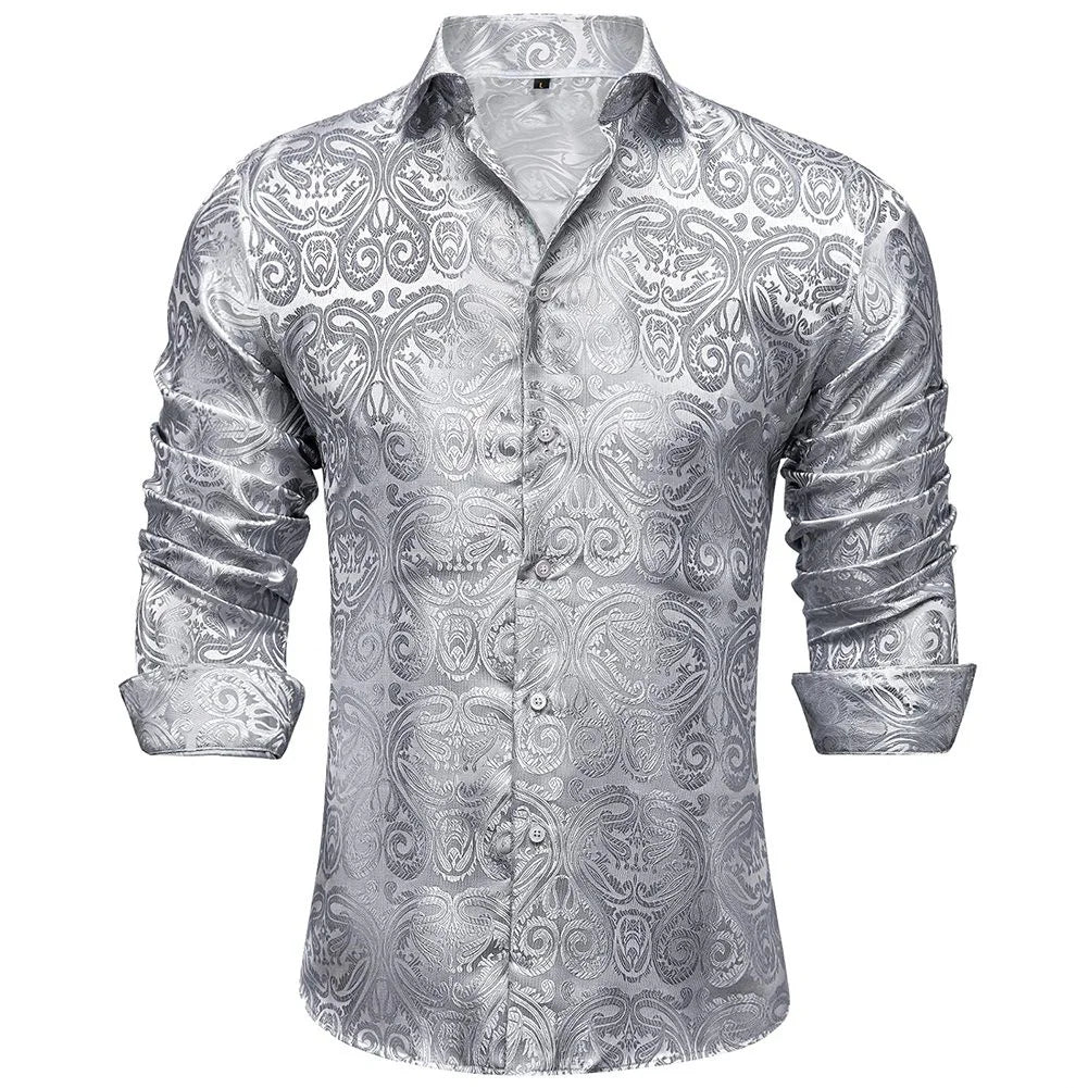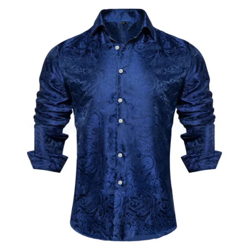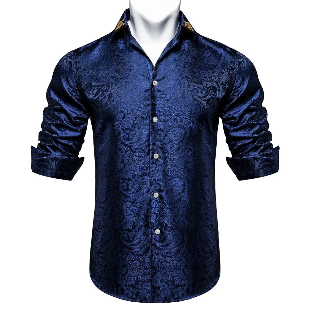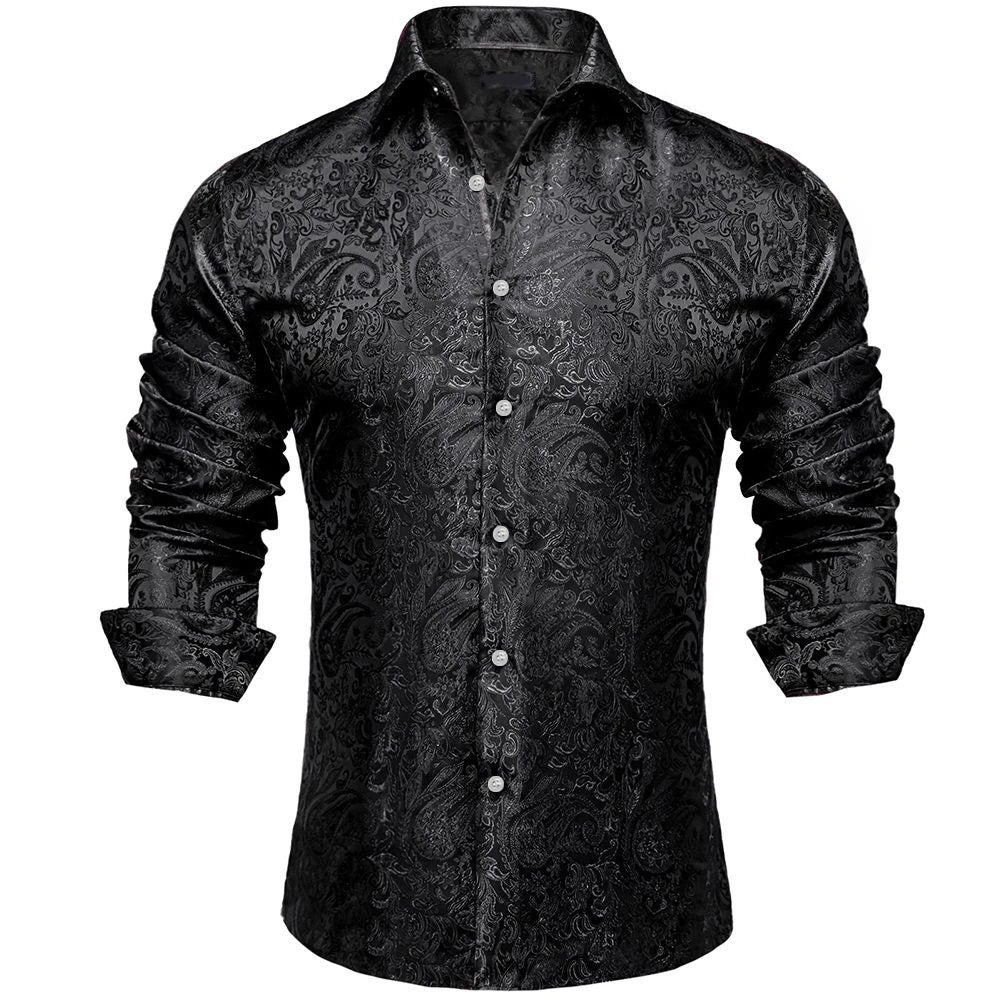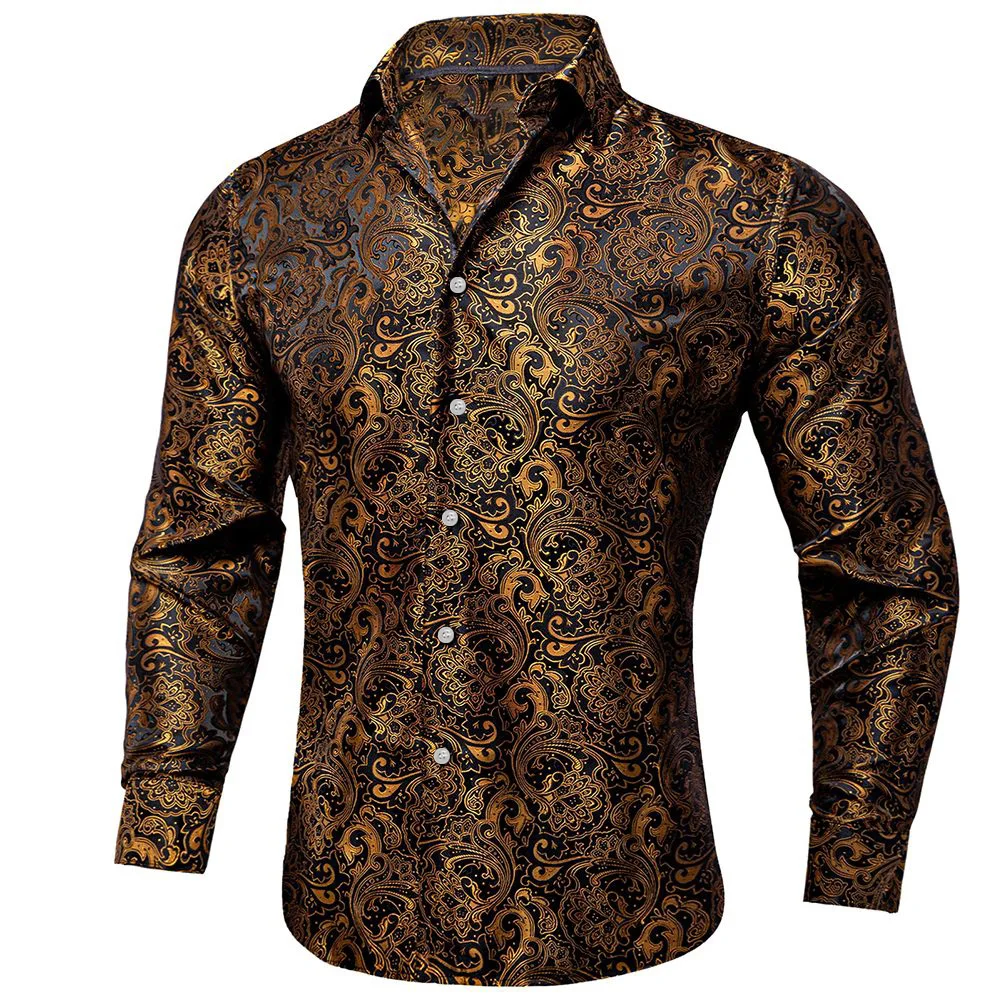 BONSIR - Mens Formal Blouse Paisley Long Sleeve Shirts Wedding Casual Style Lapel Neckline Polyester Fabric Regular Fit