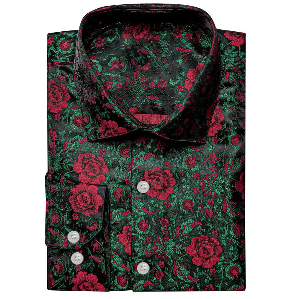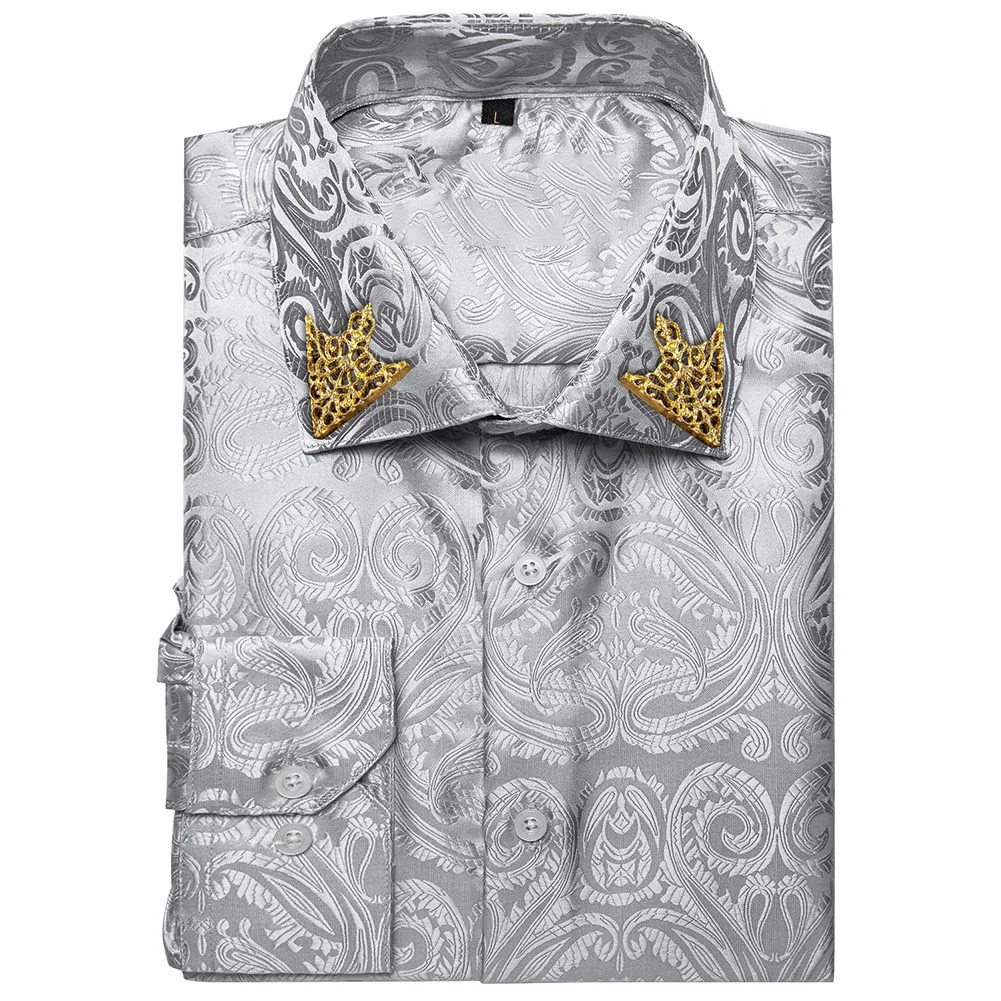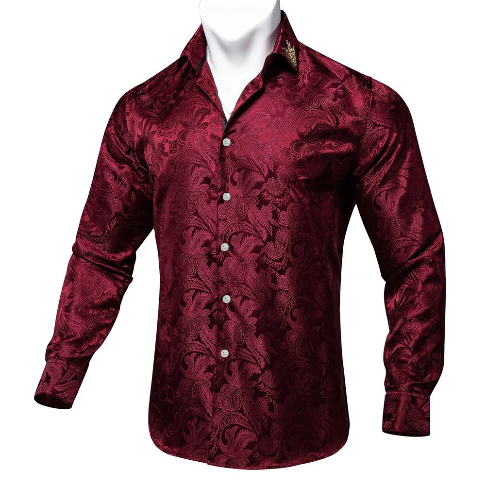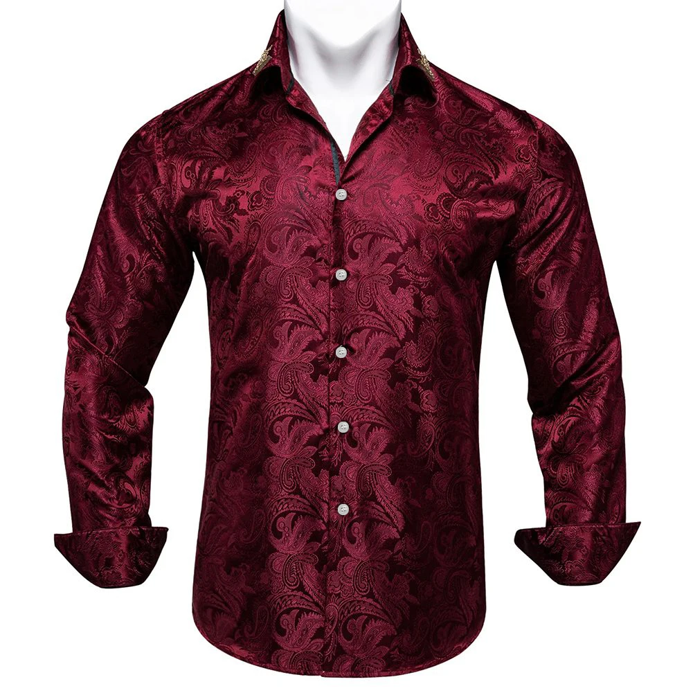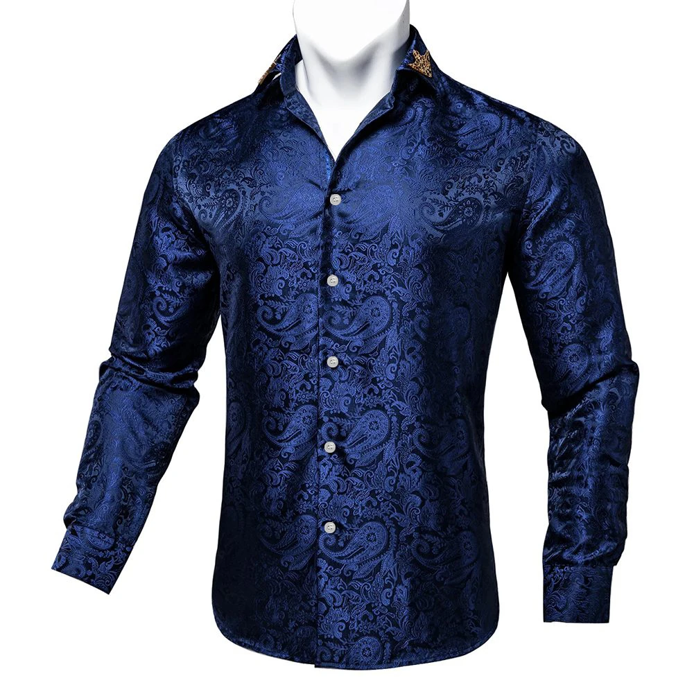 BONSIR - Mens Formal Blouse Paisley Long Sleeve Shirts Wedding Casual Style Lapel Neckline Polyester Fabric Regular Fit