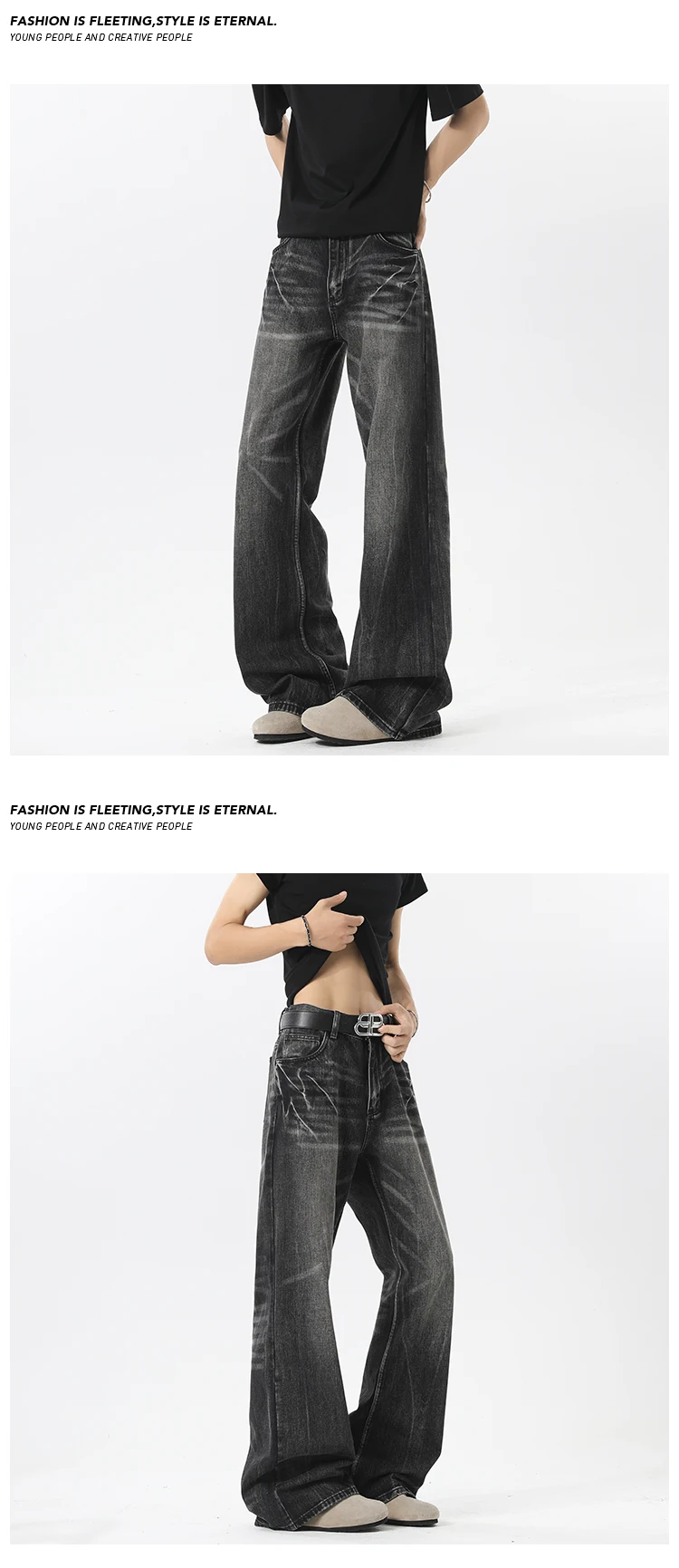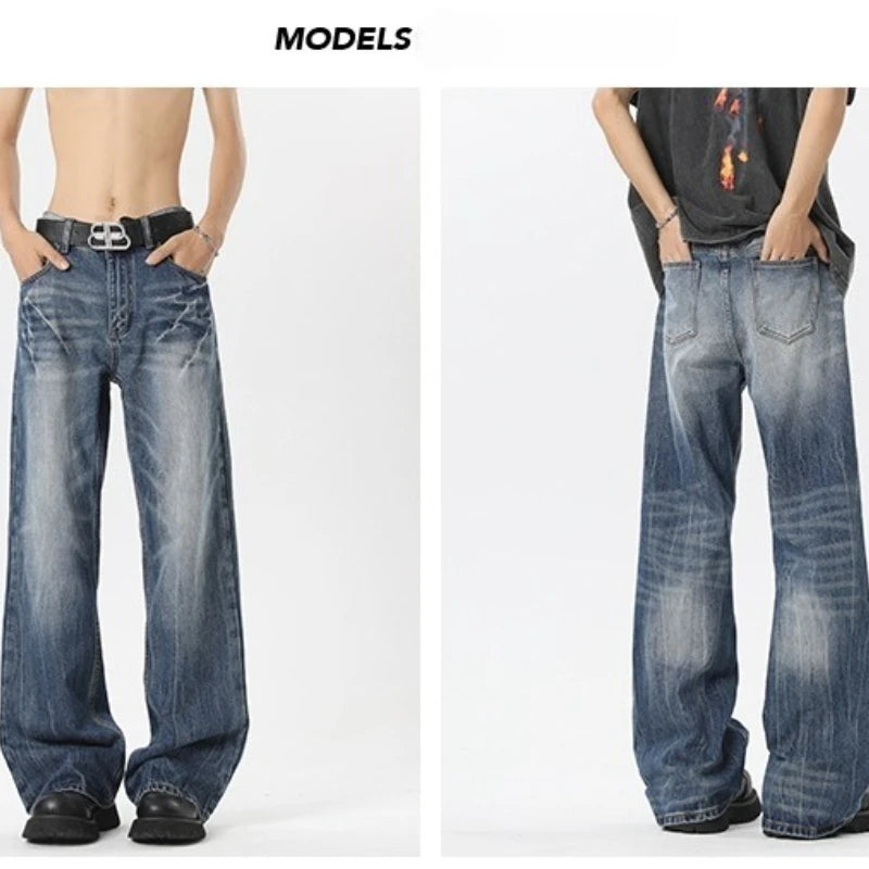 BONSIR - Men's Jeans American Style High Waist Wide Leg Loose Slimming Draping Scythe Pants Straight Denim Pants Black Jeans Men Clothing