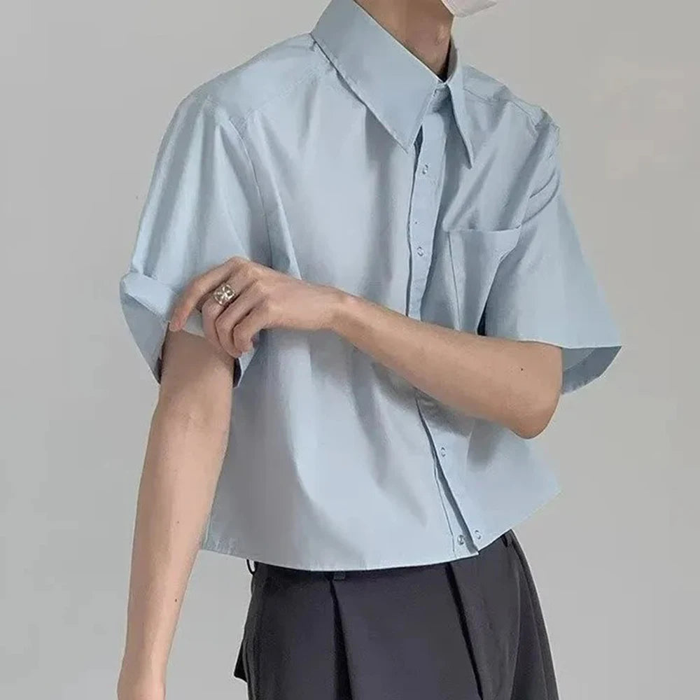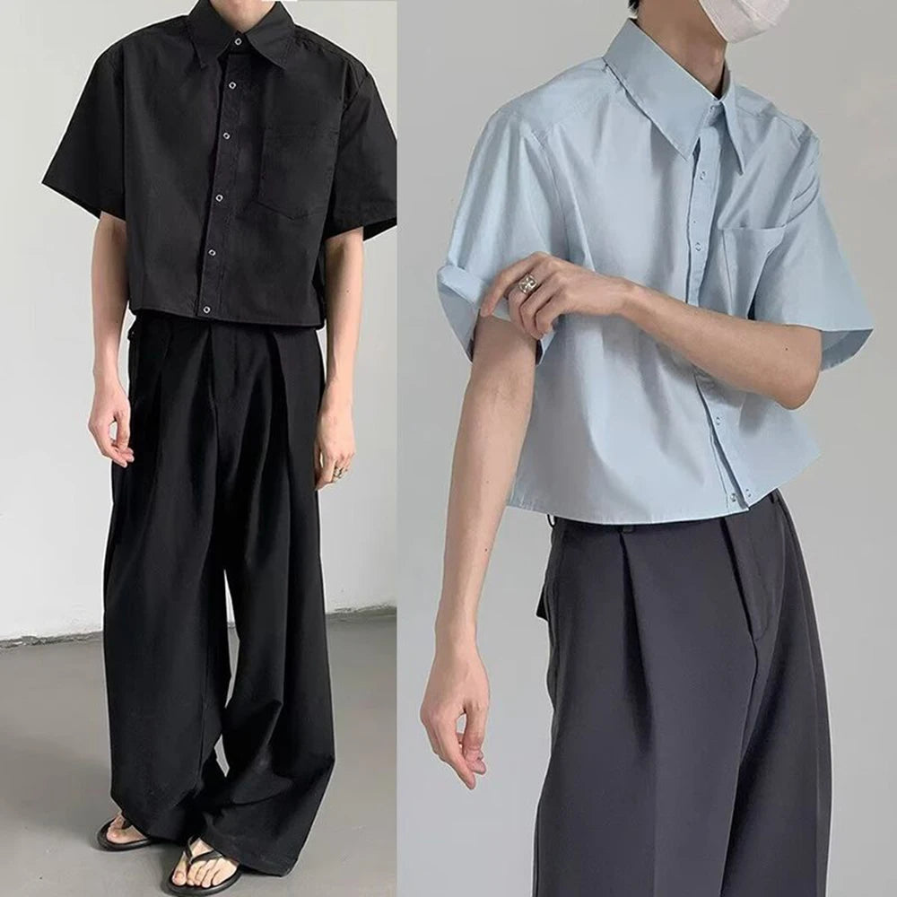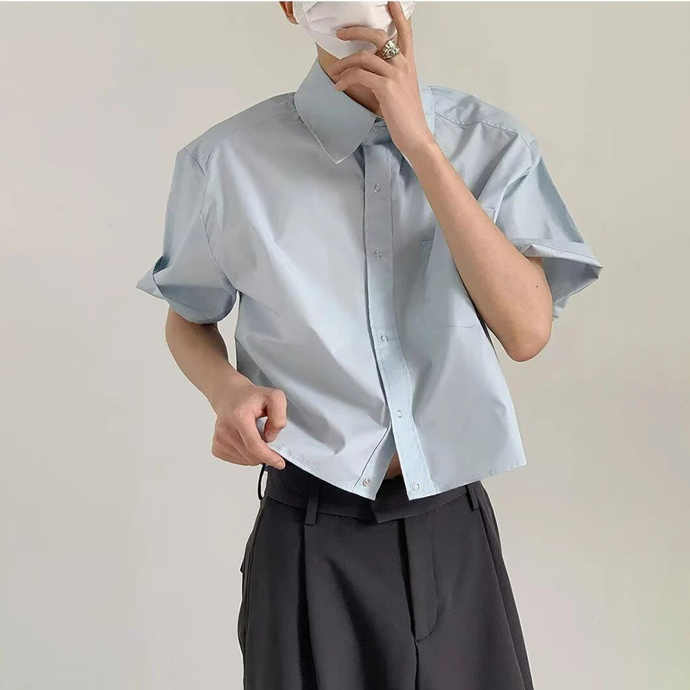 BONSIR - Mens Shirt Casual Youth Campus Thin Shirt Summer Versatile Breathable Daily Plain Short-Sleeved Top Men'S Clothing 2025 New