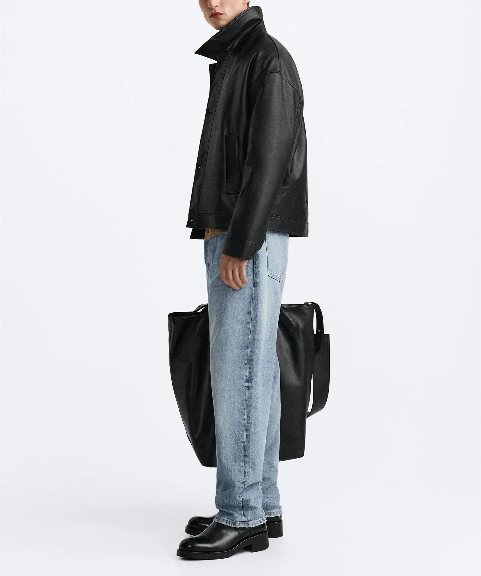 BONSIR - Men's Spring and Autumn New Fashion Casual Imitation Leather Lapel Jacket, Solid Color Single Breasted Loose PU Leather Jacket