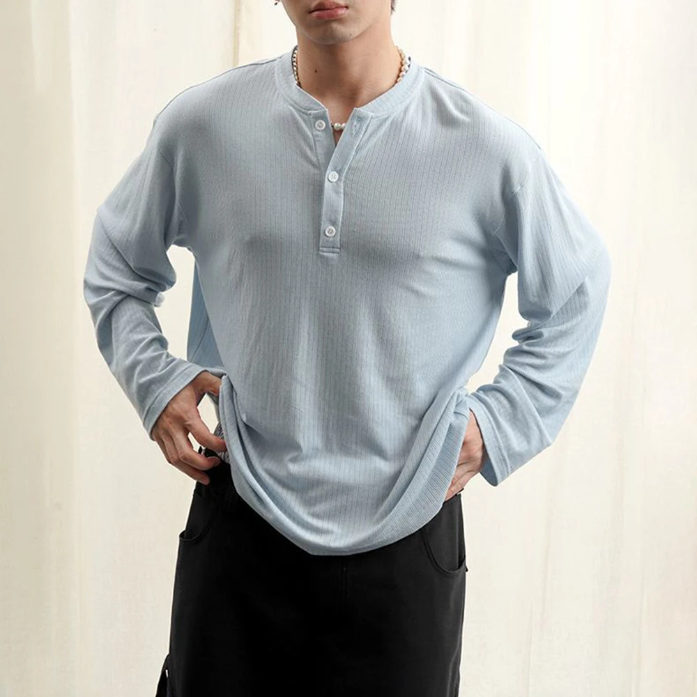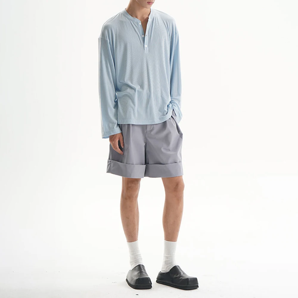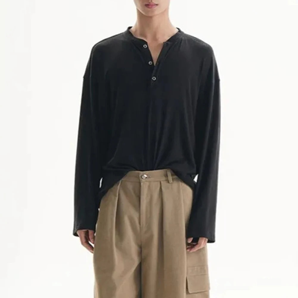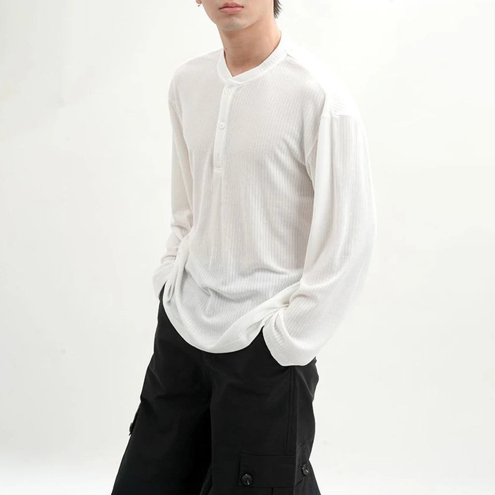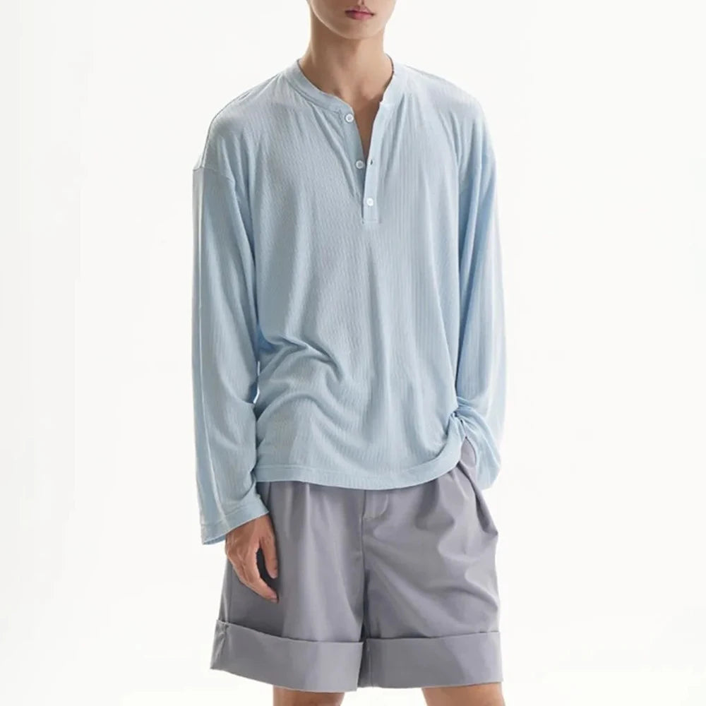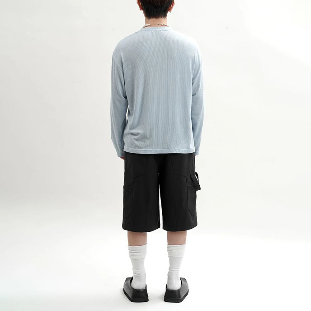 BONSIR - Mens T-Shirt New Handsome Striped Loose Long Sleeved T-Shirt Autumn Solid Color Quick Drying Harajuku Sunscreen Style Top Unisex