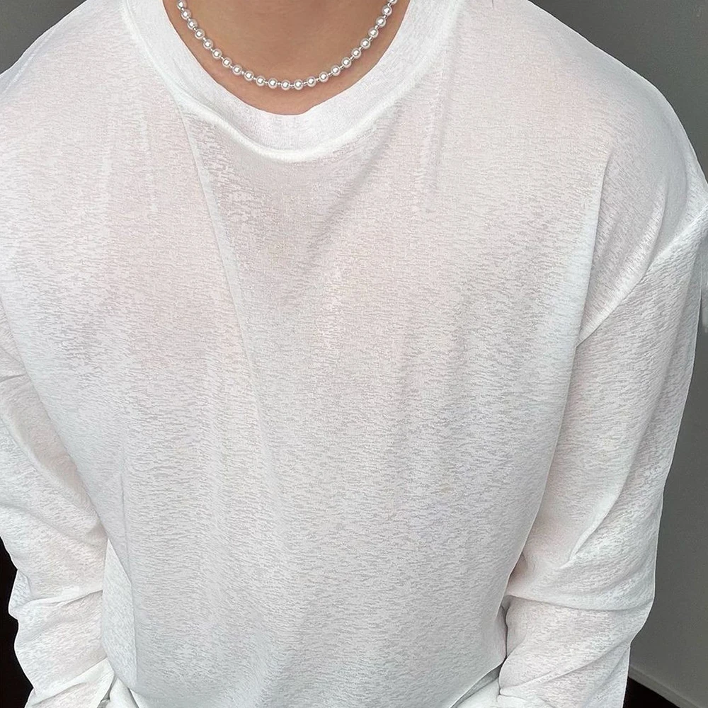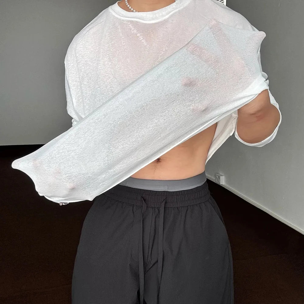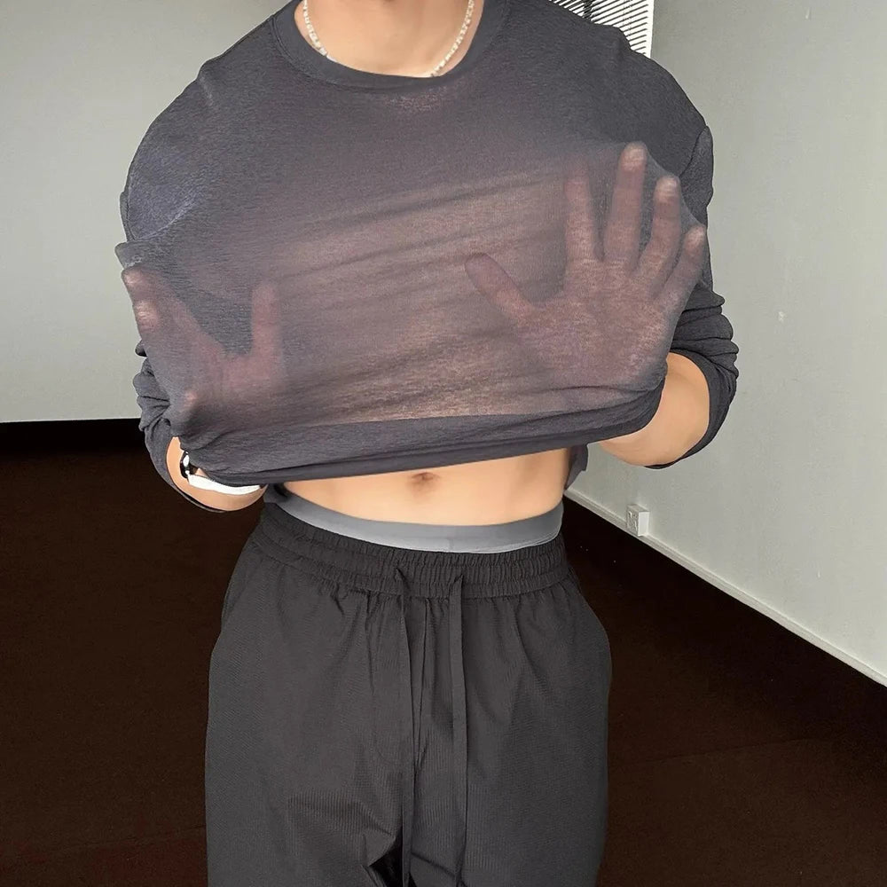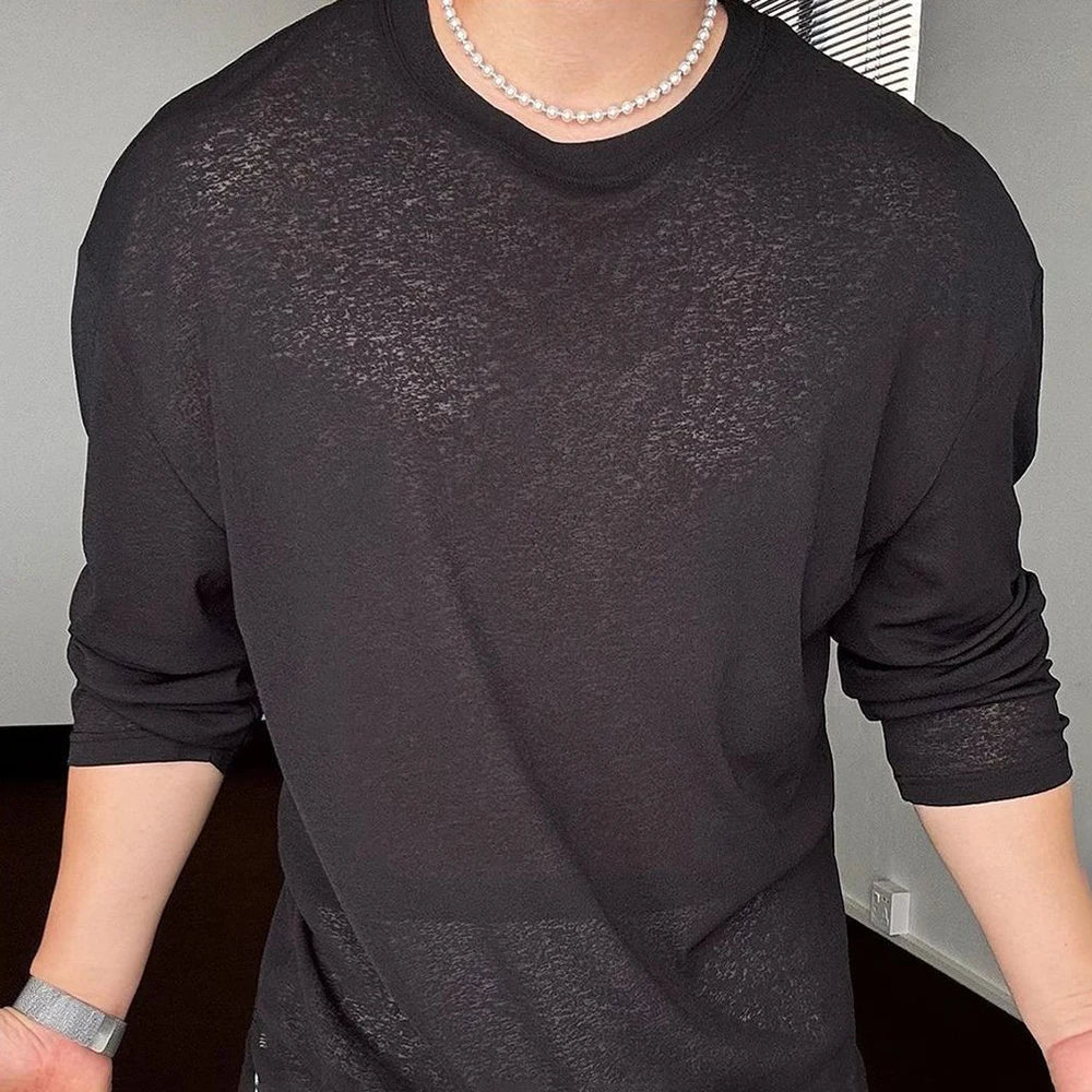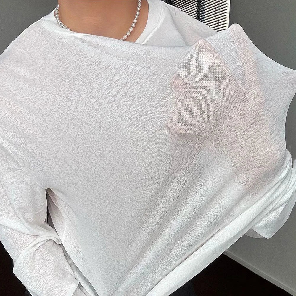BONSIR - Mens T-Shirts Ice-Feeling Breathable Slightly Transparent T-Shirts Summer Streetwear Fashion Elastic Comfort Tops Men'S Clothing
