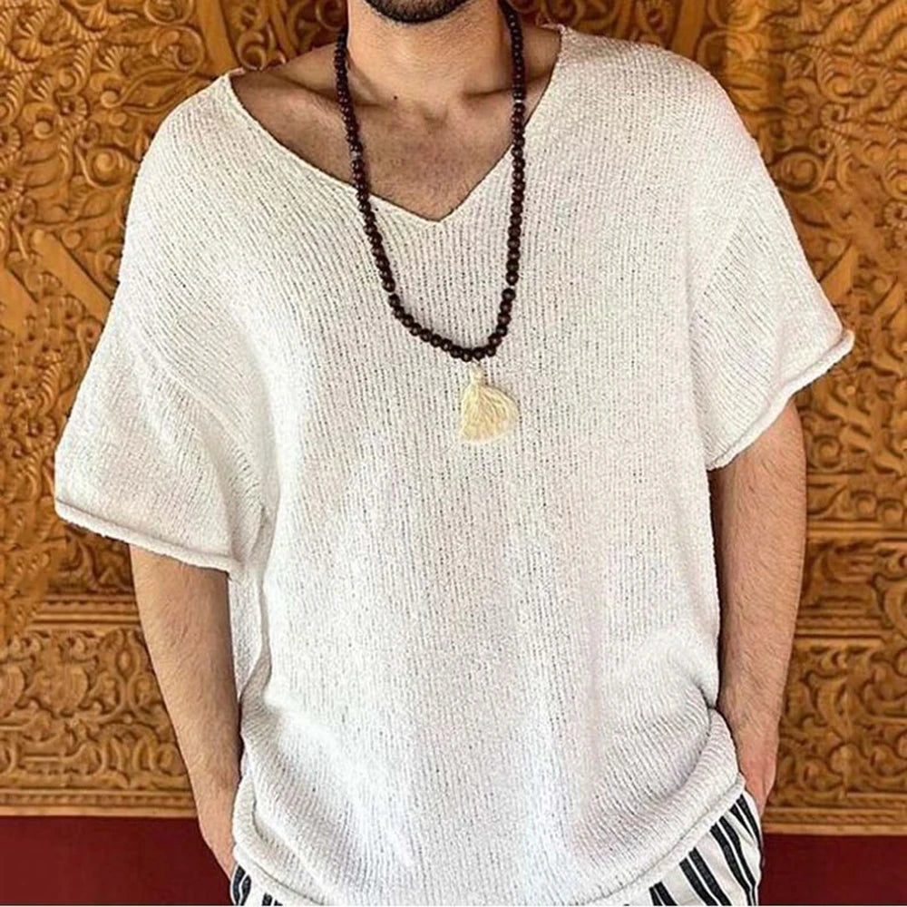 BONSIR - Mens Thin Plain Micro-Perspective Knit T-Shirt Summer Streetwear Breathable Casual Daily Short-Sleeved Tops Men'S Clothing 2025