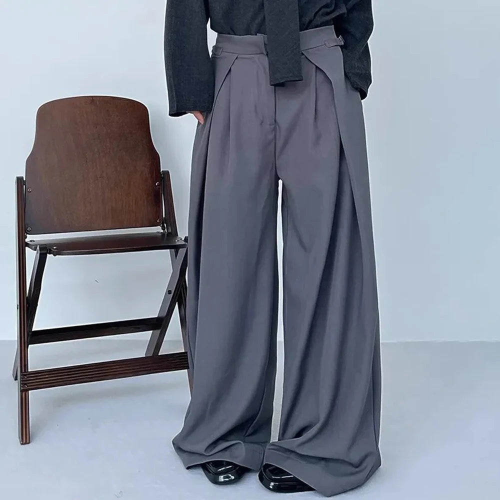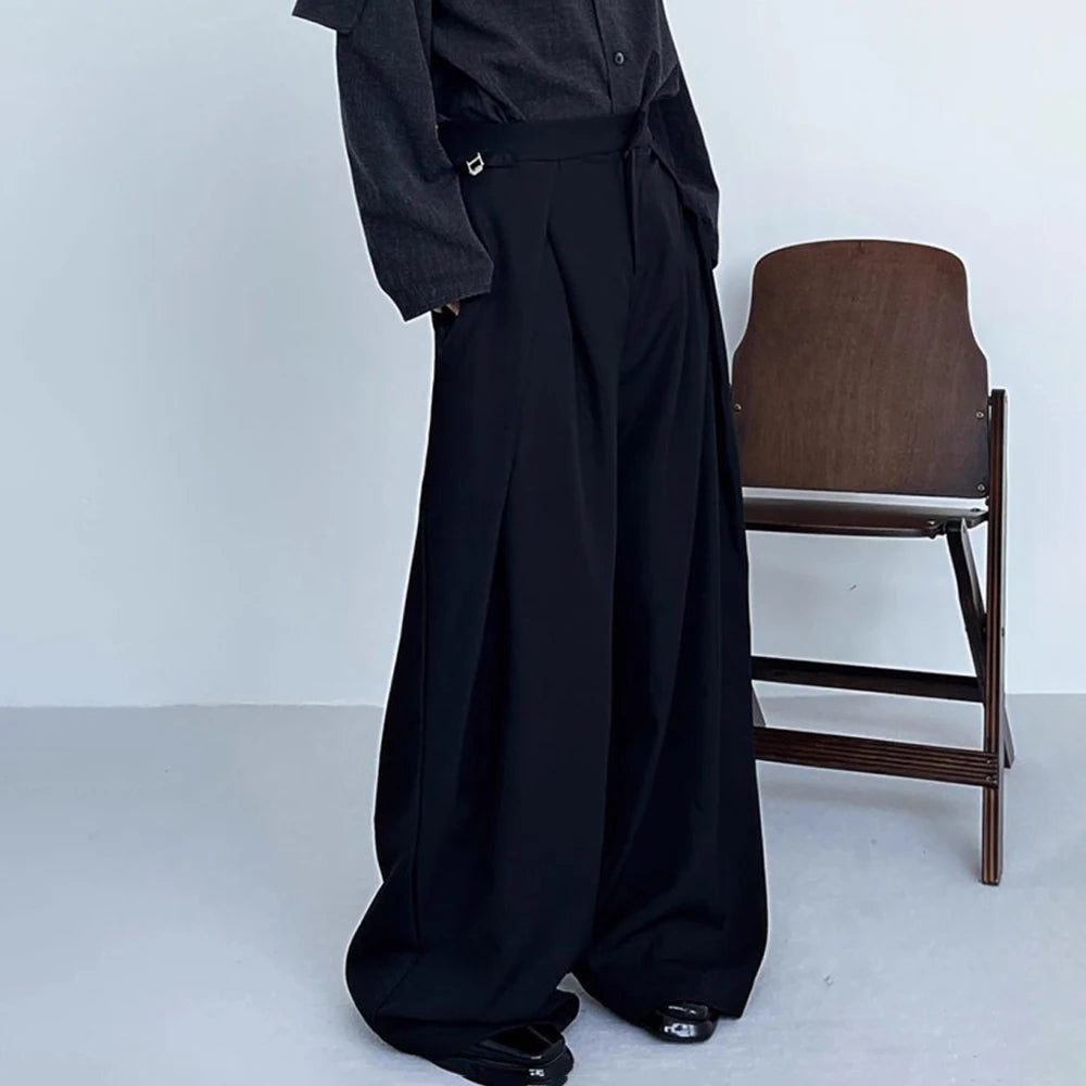 BONSIR - Mens Trousers Belted Pleated Casual Pants Streetwear Fashion Niche Summer Youth Campus Wide Leg Pants Men'S Clothing 2025 New