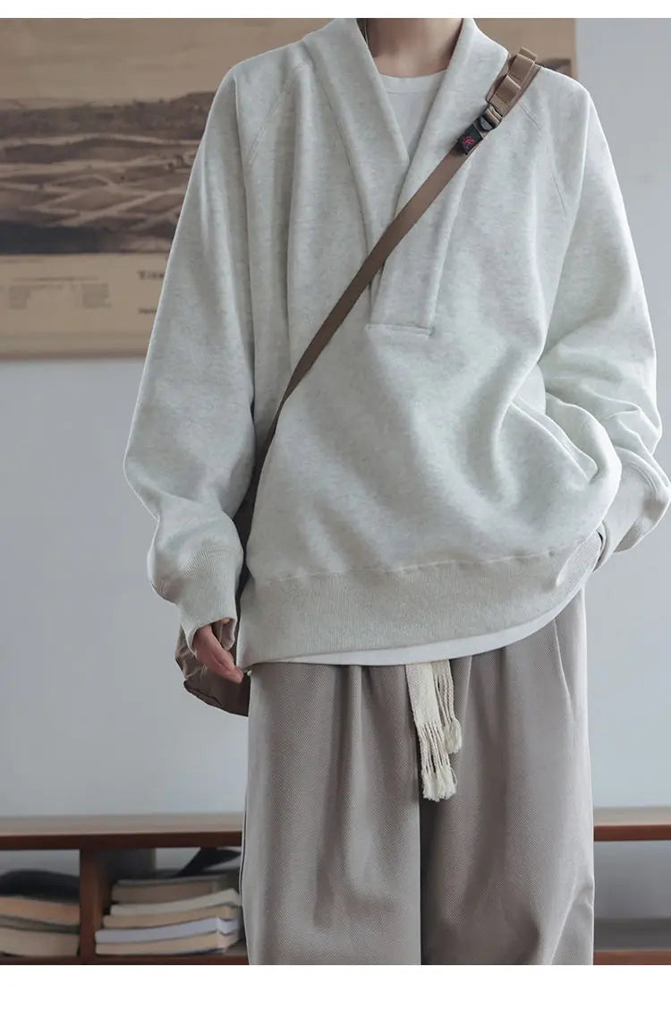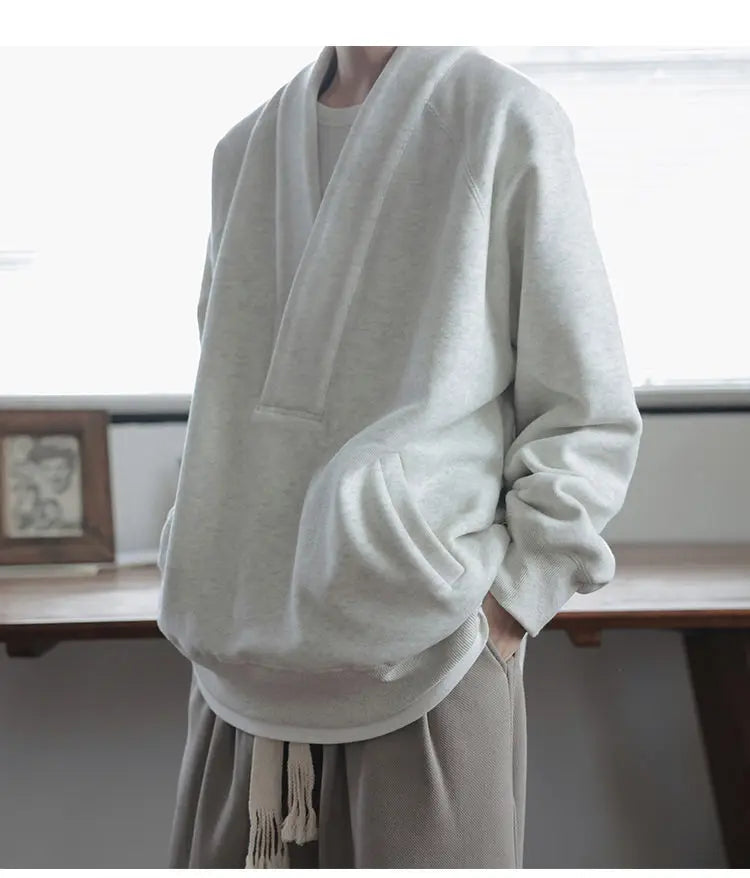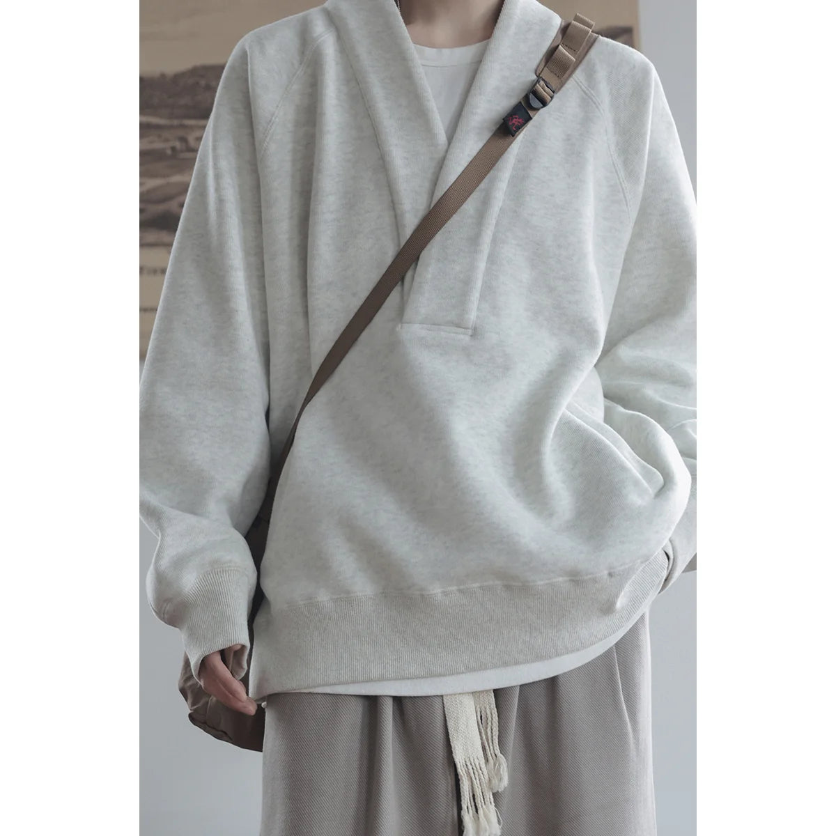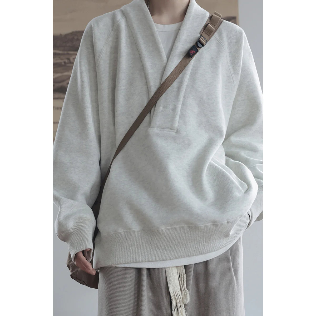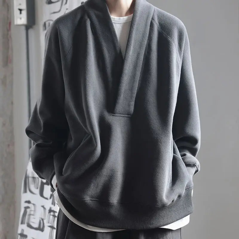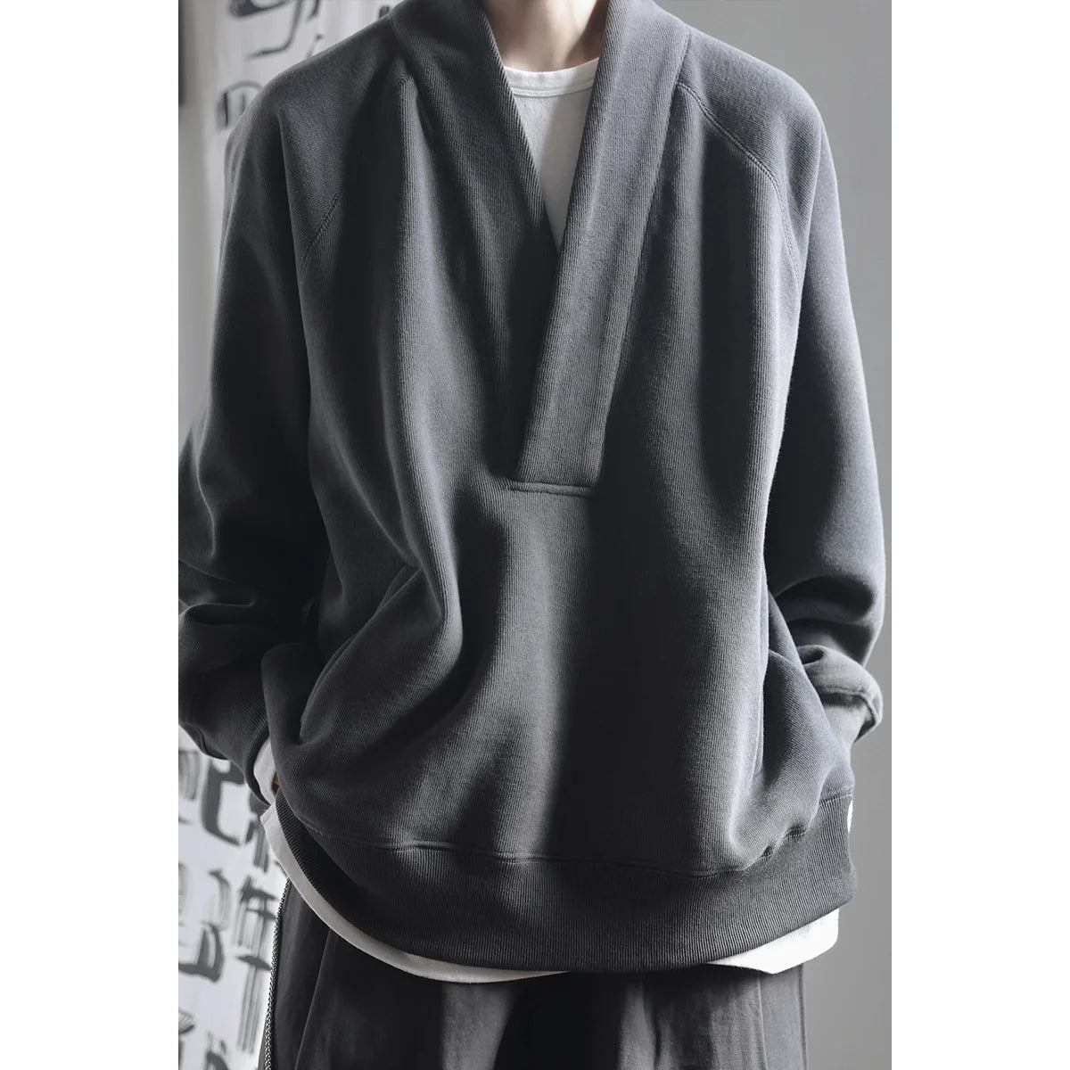 BONSIR - new graphite gray chic V-neck sweatshirt, bristle plus fleece raglan sweatshirt jacket