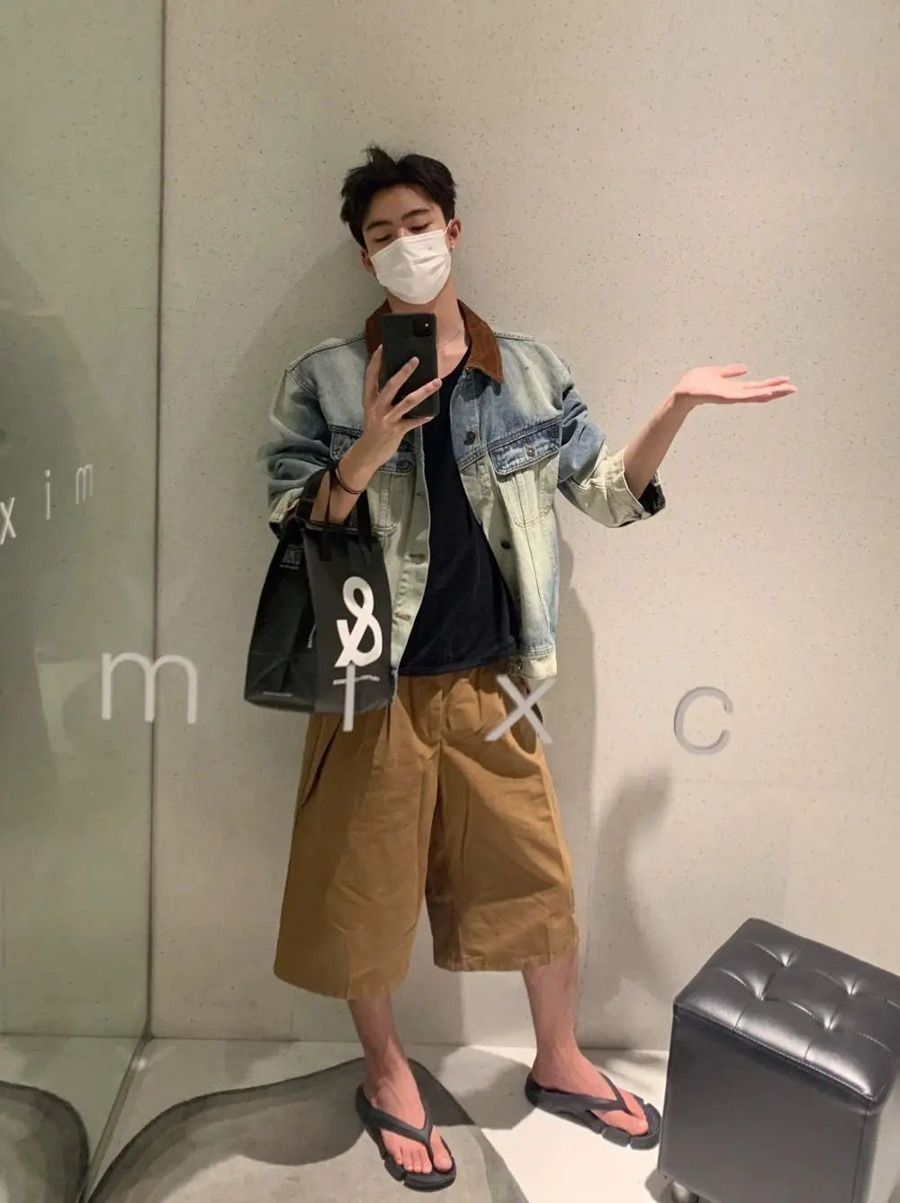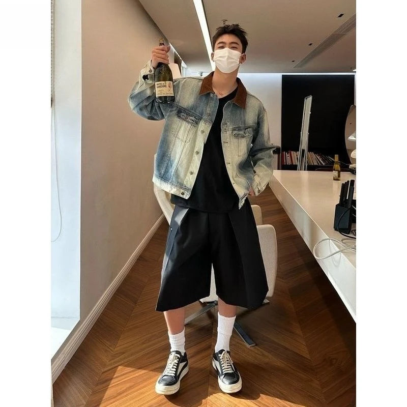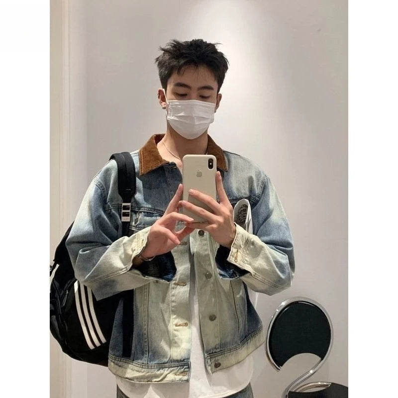 BONSIR - New spring and autumn design sense old denim jacket men's Korean version high-quality contrasting color casual collar