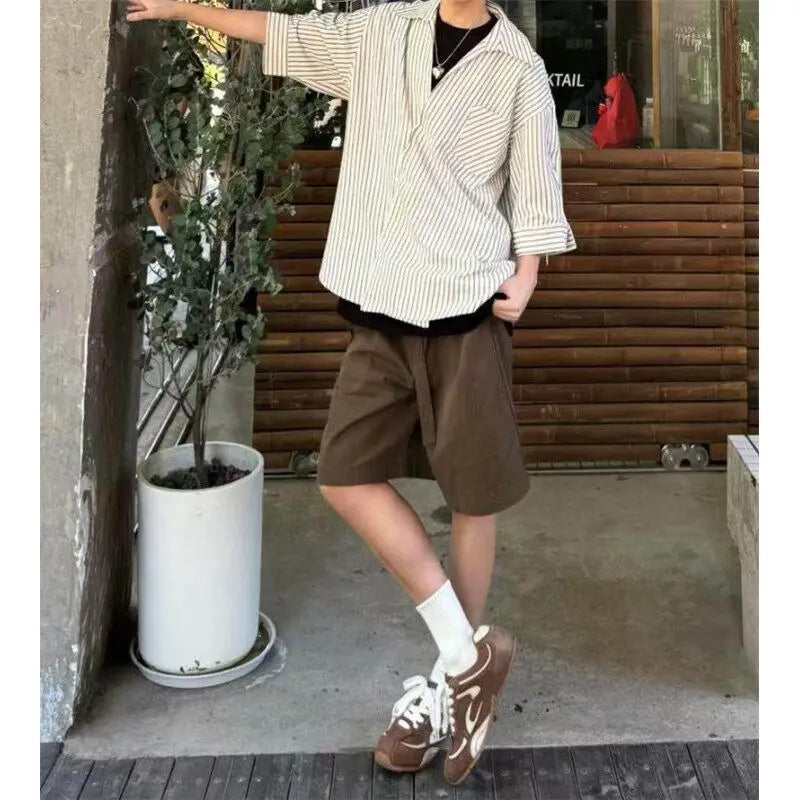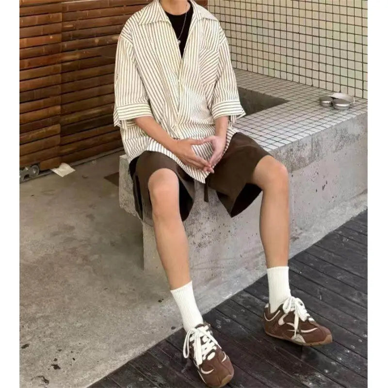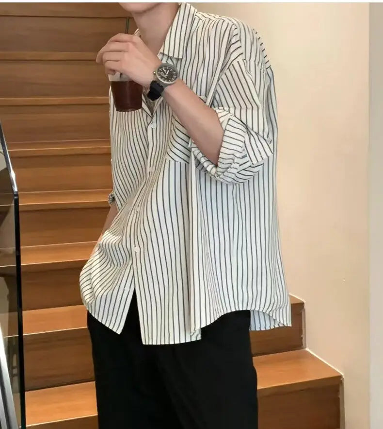 BONSIR - Oversized Men's Striped Half Sleeve Shirt, Simple, Comfortable and Versatile, Business Casual Unisex