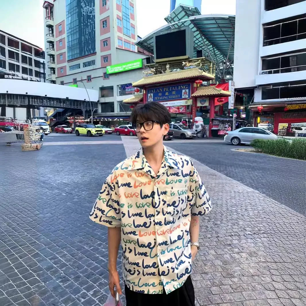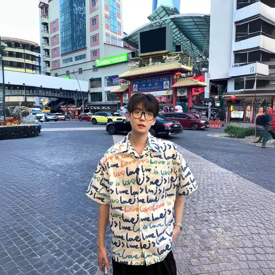 BONSIR - Salt boyfriend style retro shirt summer thin ice silk short-sleeved shirt cleanfit seaside wear half-sleeved tide