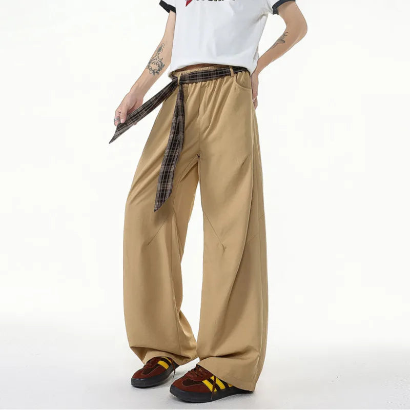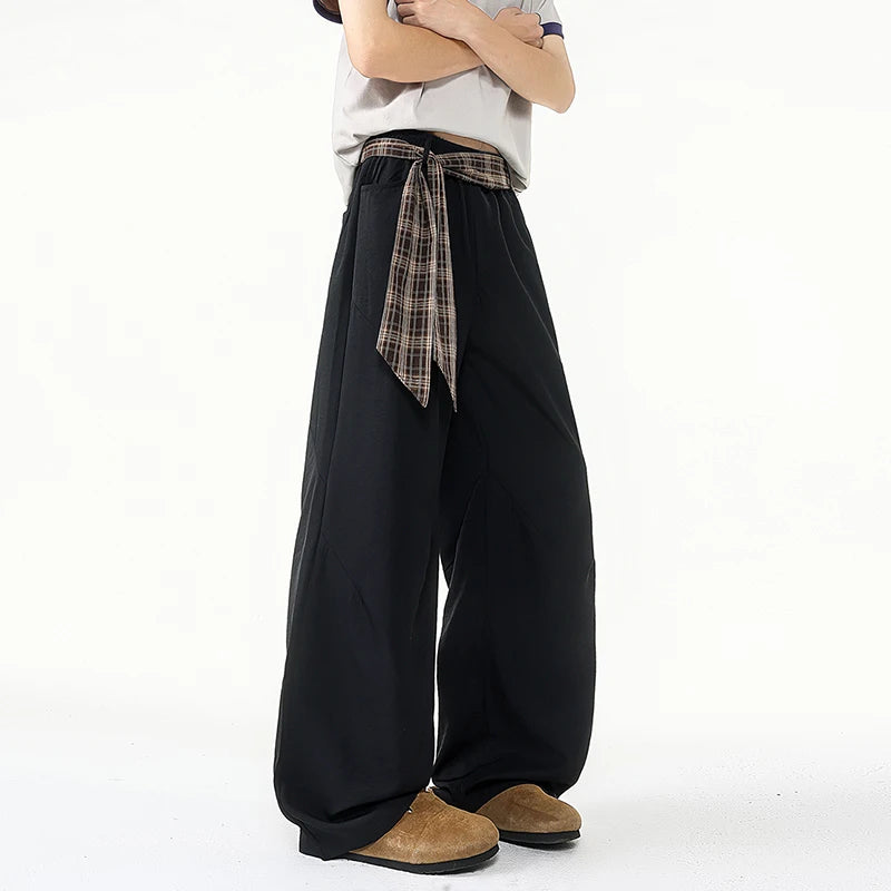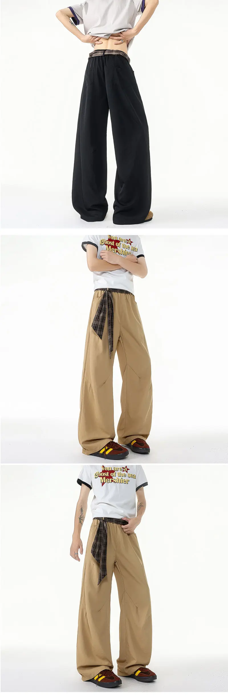 BONSIR - Simple Men's Trousers Casual Solid Color Ice Slik Deconstruction Wide Leg Elastic Waist Loose Male Pants Summer 24K5244