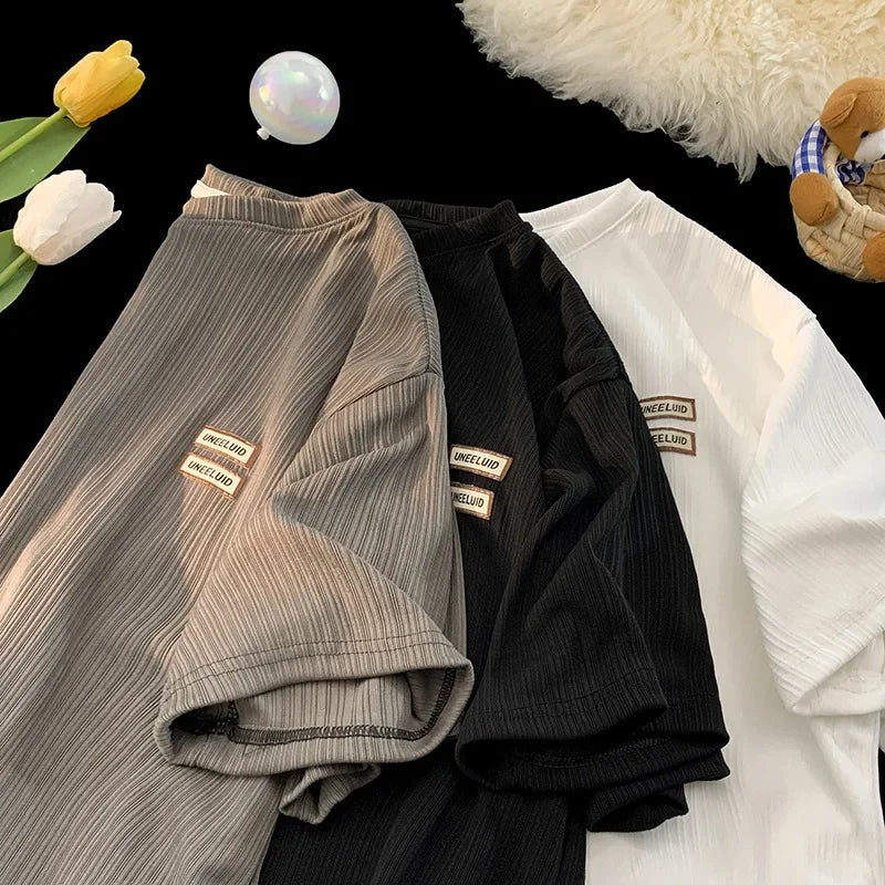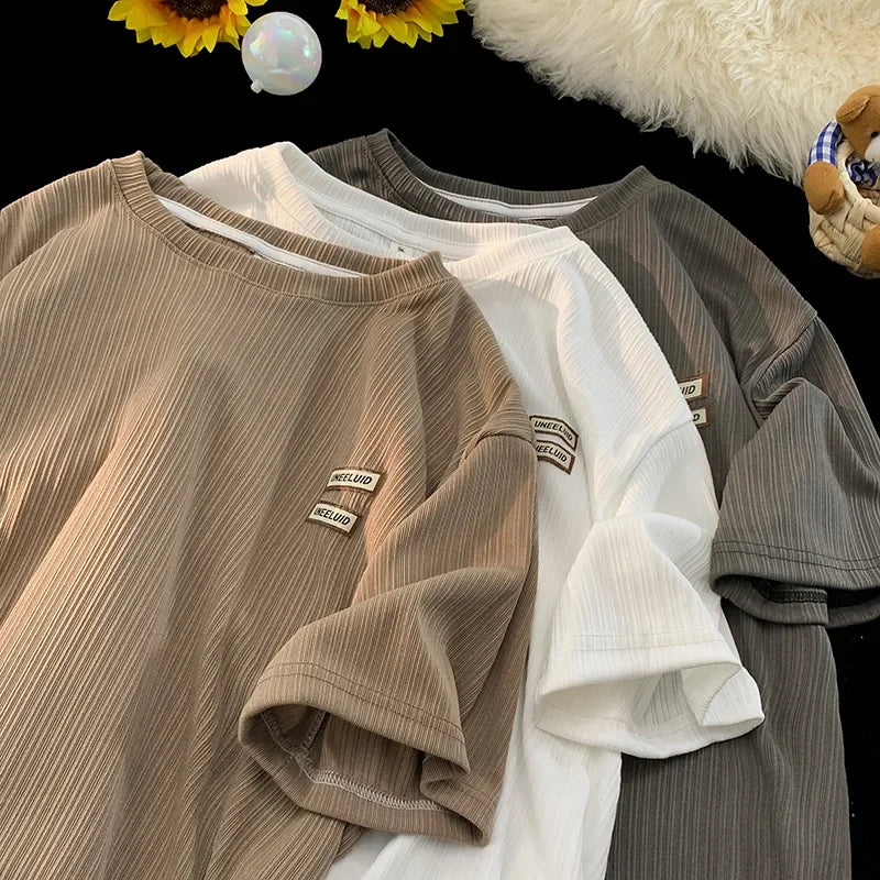 BONSIR - Solid Color Simple Versatile Men T-shirt Loose Breathable Summer Basic Male Short Sleeved T-shirt Round Neck Casual Top