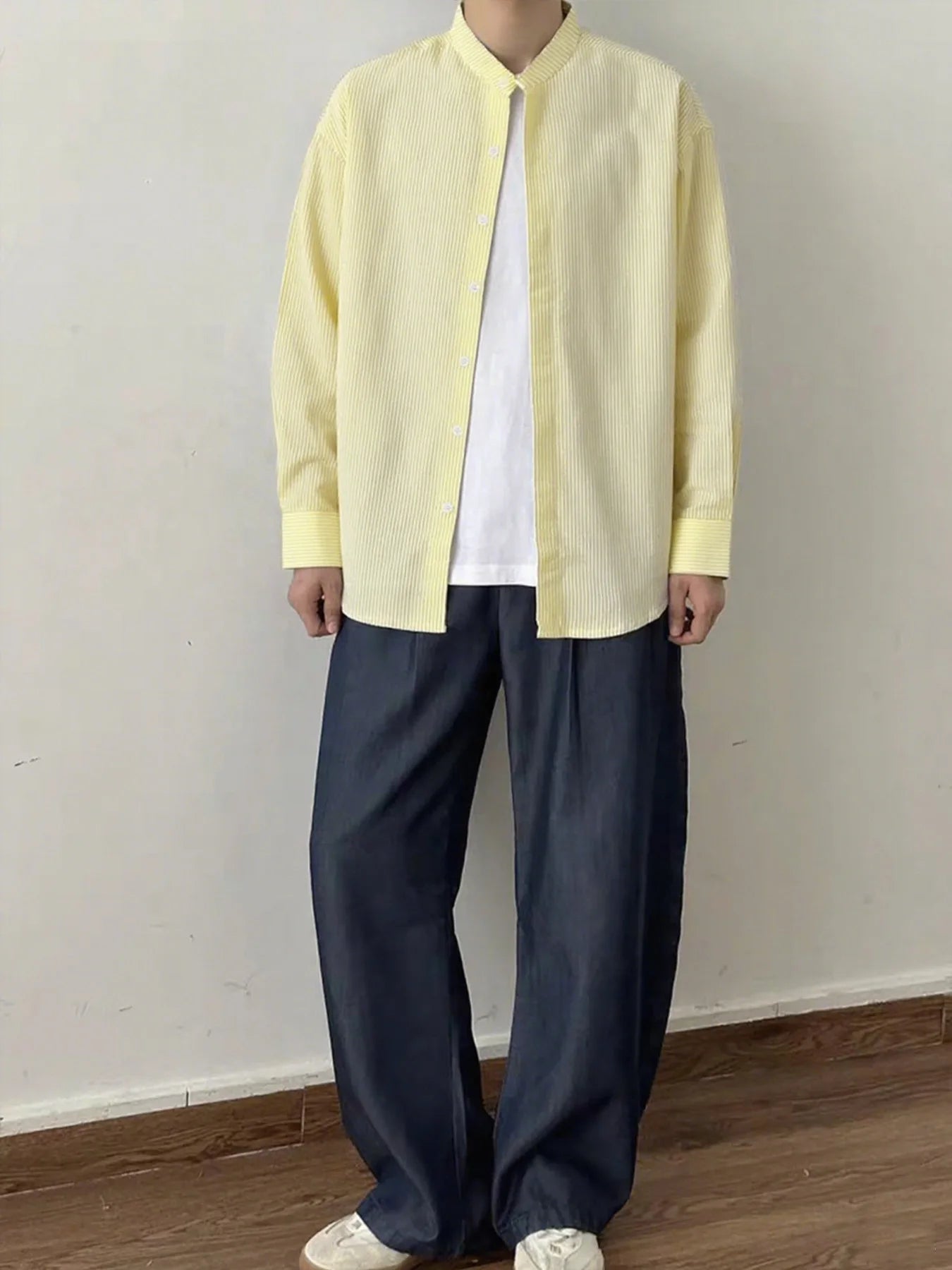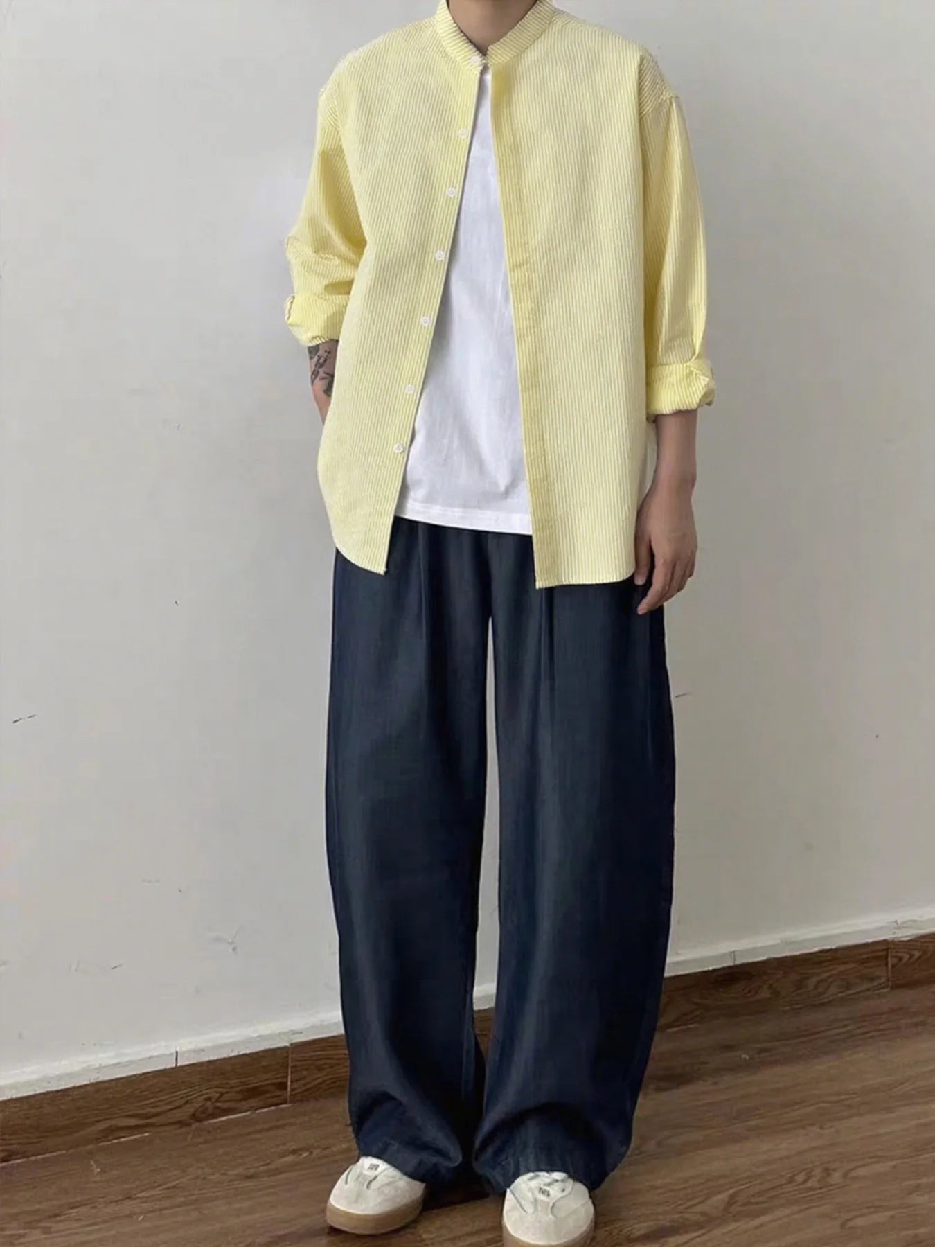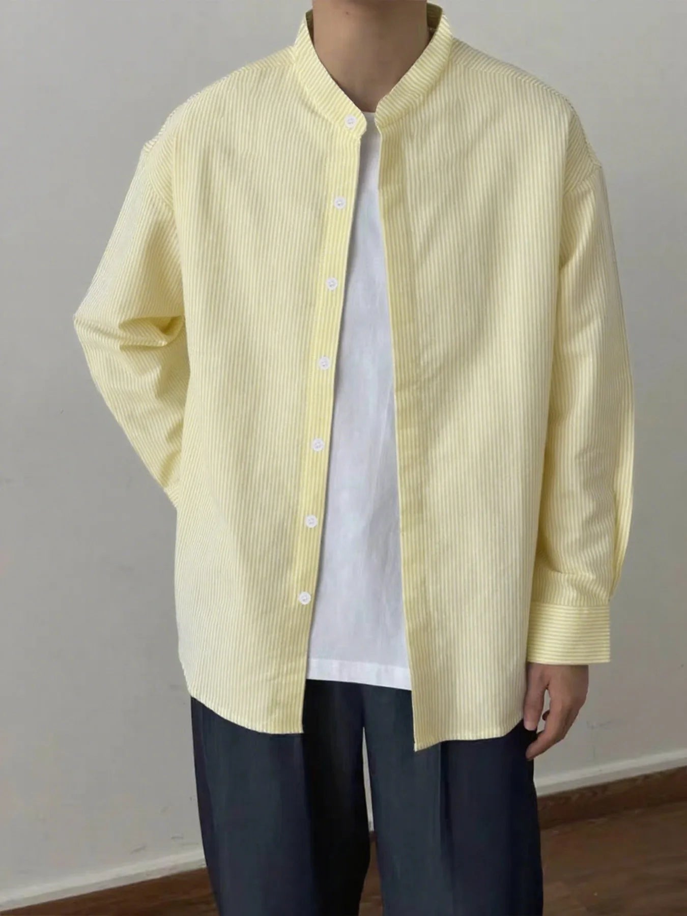 BONSIR - Spring and Autumn New Chinese Stand Up Collar Shirt Men's Handsome Comfortable Textured Long-Sleeved Striped Shirt