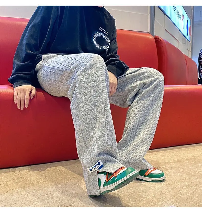 BONSIR - Spring pants high street tide casual sports trousers men's American design trendy brand draped wide-leg floor trousers