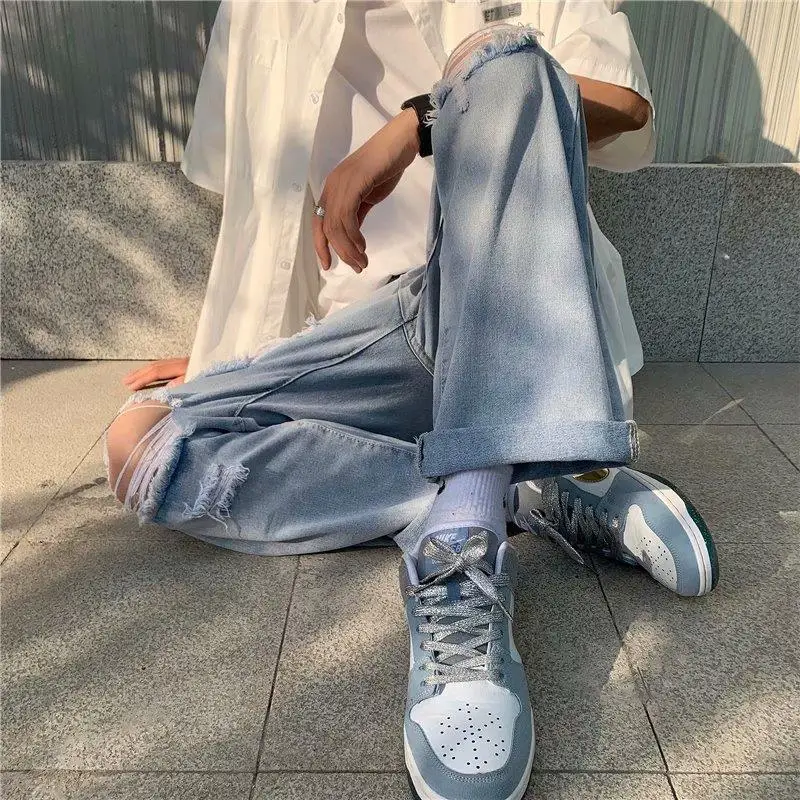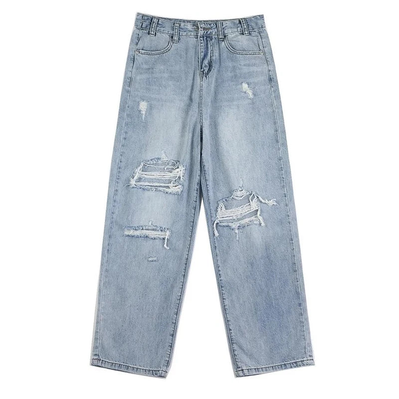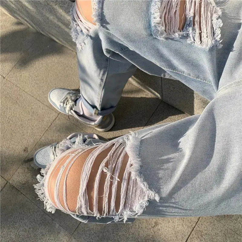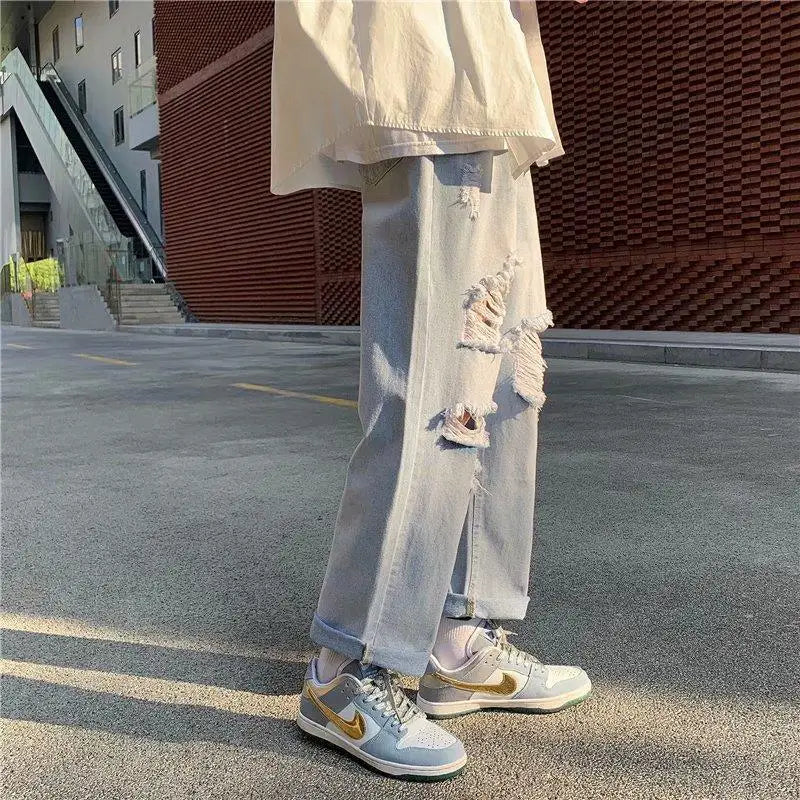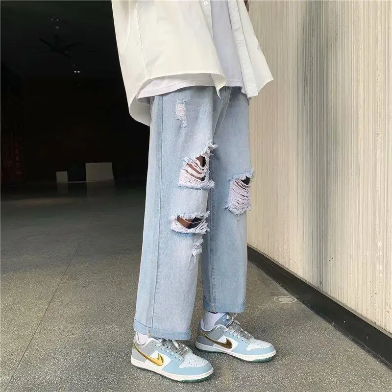 BONSIR - Spring Summer New Y2K Hole Fashion Straight Pants Man High Street Thin Style Personality Cowboy Cotton Ankle Length Pants