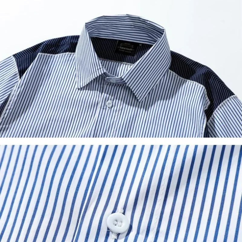 BONSIR - Striped Contrasting Color Men's Short Sleeved Shirt Japanese Lapel Versatile Male Blouse Summer Thin Loose Casual Top
