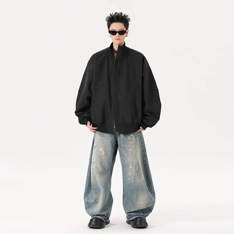 BONSIR - Stylized heavy industry ribbed stand collar American high street stand collar jacket baseball flight jacket men amber streamer