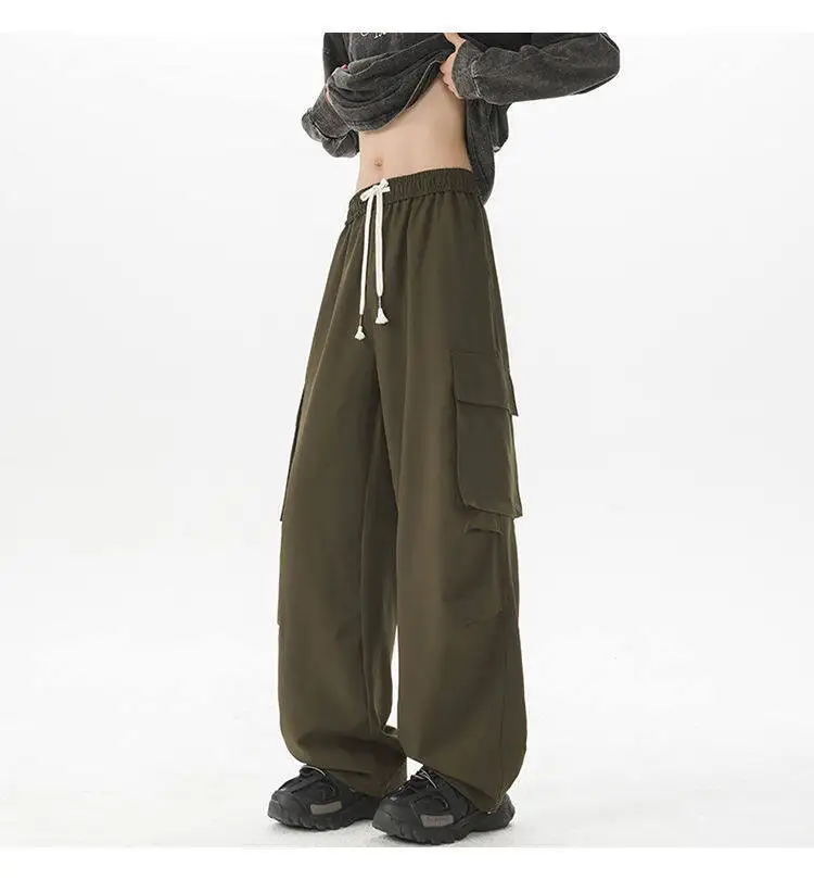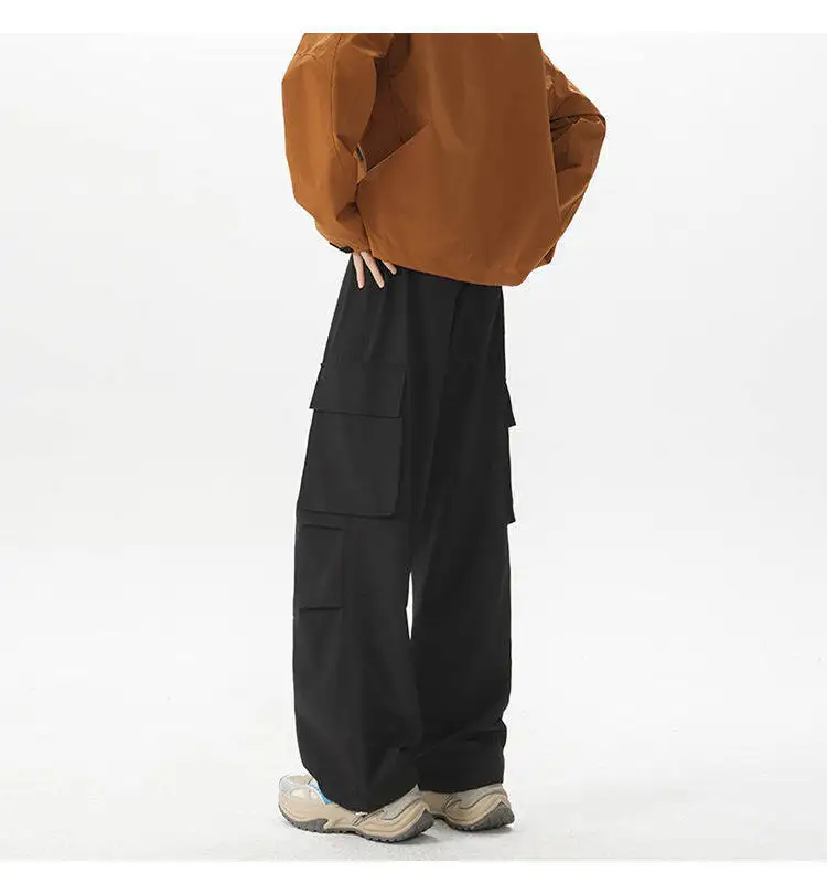 BONSIR - Summer Casual Pants Men Retro Pocket Cargo Pants Men Japanese Streetwear Hip-hop Loose Wide Leg Pants Mens Vintage Trousers