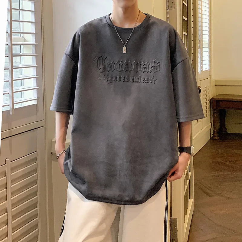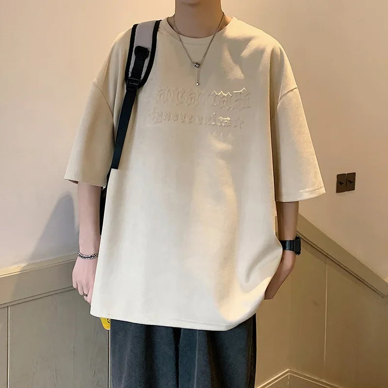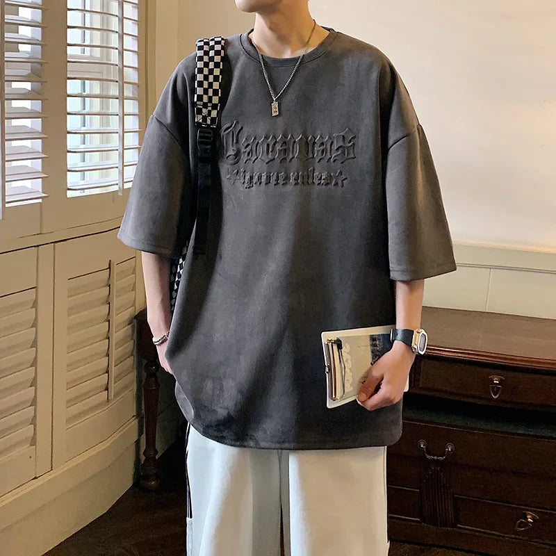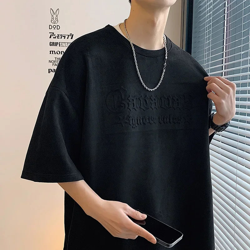 BONSIR - Summer Letter Foming Printing Suede T-Shirt Men 2024 Mens Hip Hop T-Shirts Streetwear Round Neck Tshirt Loose Casual Unisex Tops