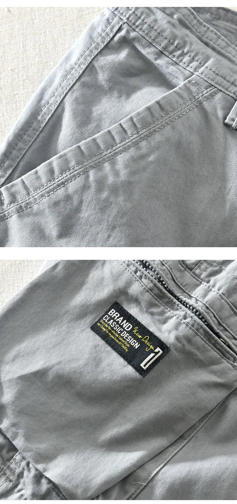 BONSIR  -  Summer Male Cargo Five Point Pants Fashion Men's Workwear Versatile Pure Cotton Washed Multi Pocket Shorts Pants
